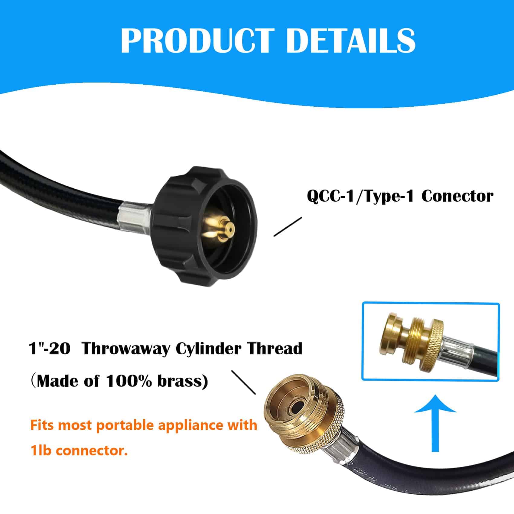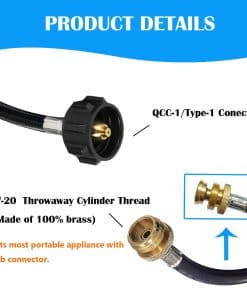 5. El regulador de la parrilla de gas tiene un conector QCC que se conecta fácilmente a una placa de hierro y a un tanque de propano de 1 lb a 20 lb, y está certificado por la CSA para mayor tranquilidad al usarlo. De alta calidad, no necesitas reemplazar las piezas con frecuencia para ahorrar la mayor parte de tu dinero.