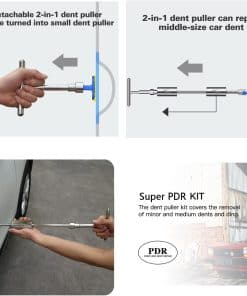 2. ¡Las cosas se hacen más fáciles! A veces es difícil encontrar las abolladuras, así que tenemos el tablero de alambre para ayudarte a ver claramente, es más conveniente para verificar si la abolladura del coche está arreglada o no. Además, te damos muchas herramientas pequeñas para ayudarte a limpiar tu coche después de terminar de reparar, así que no te preocupes de que dejará marcas. ¡Tu coche lucirá nuevo después de usar nuestros productos!