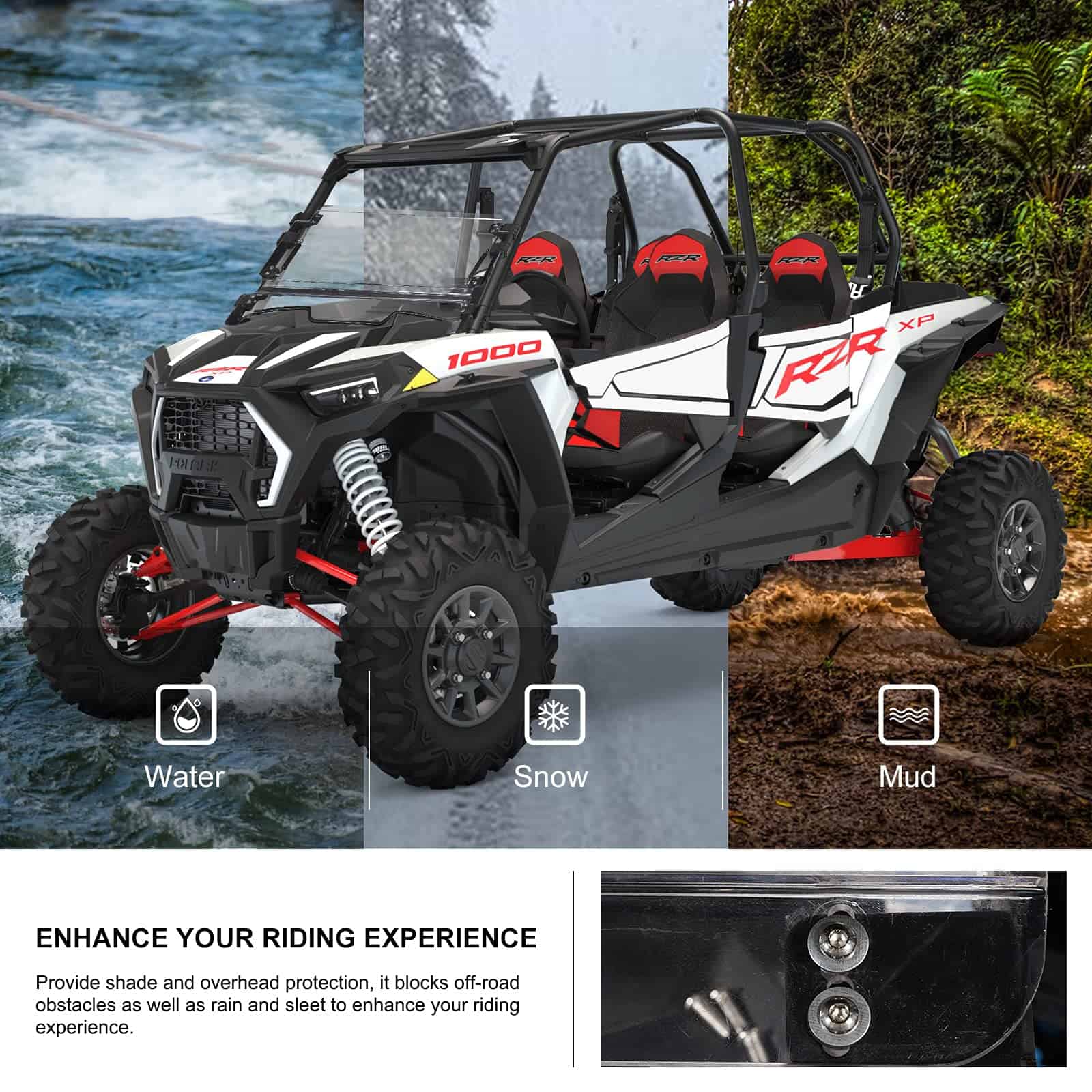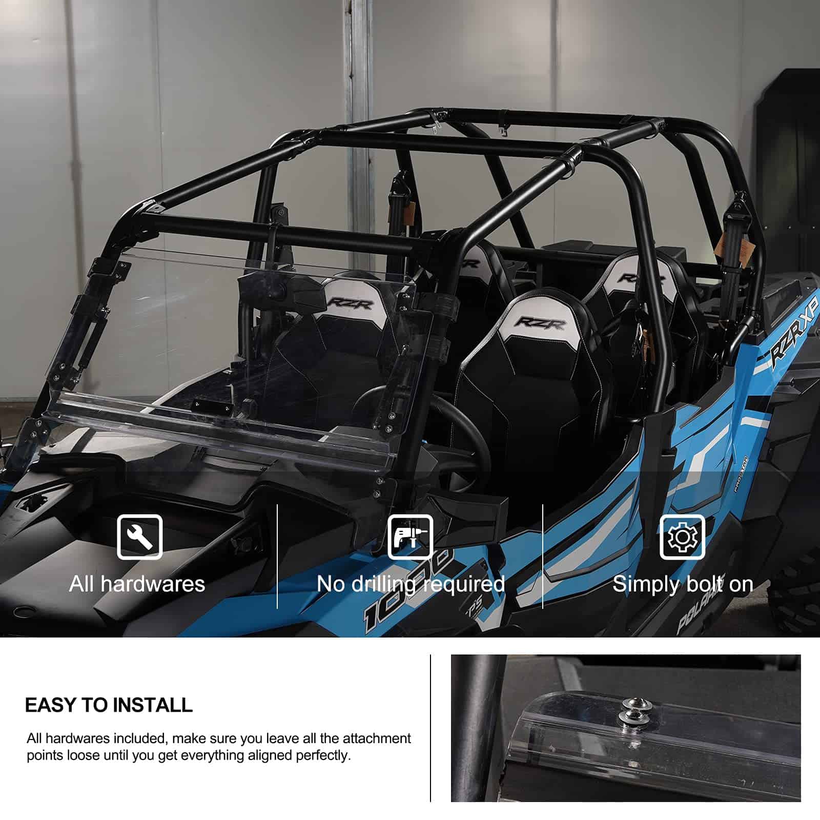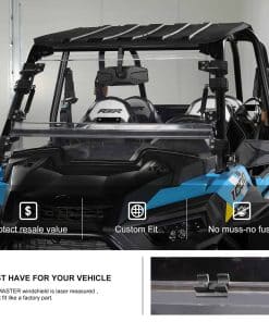 Especificaciones: Material: Policarbonato resistente a los arañazos Dimensiones del paquete: 40.9 x 18.1 x 3.7 pulgadas Peso del envío: 17.1 libras Compatibilidad: RZR XP 1000 2019-2023 RZR XP 4 1000 2019-2023 RZR XP Turbo 2019-2021 RZR XP 4 Turbo