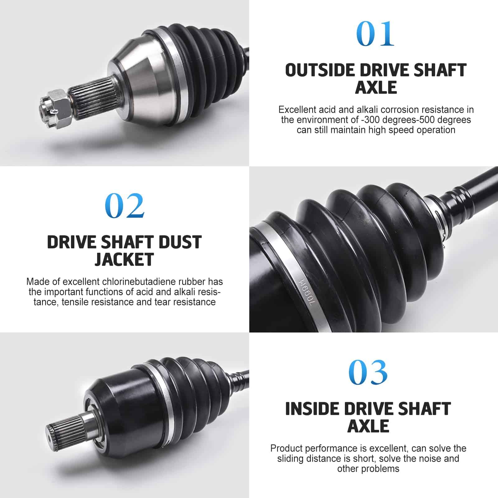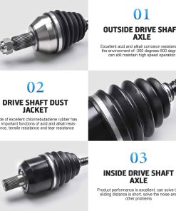 Eje de Transmisión Frontal CV Axle Compatible con Hon da 2019 2020 2021 Talon 1000X, 2020 2021 Talon 1000X-4 Hon da 2019 2020 2021 Talon 1000R. Unidad compatible SXS1000S2X, SXS1000S4. Número de pieza 44250-HL6-A01, 42220-HL6-A01. Todos los componentes de KLV Cv Axles son mecanizados con precisión para garantizar una articulación suave. Botas de neopreno para protección de calidad contra temperaturas extremadamente calientes o frías. Longitud comprimida: 29,02 pulgadas; Estrías de junta exterior: 30T; Longitud comprimida de la junta exterior: 3,05 pulgadas; Estrías de junta interior: 26T; Longitud comprimida de la junta interior: 3,26 pulgadas. Los ejes de transmisión de la CV Axle Drive Shaft están hechos con acero cromoly 4340 resistente para una resistencia y longevidad superiores. Nuestros ejes de alto rendimiento superan en un 20% la resistencia y durabilidad de los ejes estándar de fábrica. Dimensiones del producto 27 x 4,2 x 4,2 pulgadas. Nos comprometemos a ofrecer a cada propietario de automóvil una experiencia de conducción cómoda y tranquilizadora. Realizamos estrictamente una inspección integral para garantizar una calidad excelente antes de que el producto le sea entregado, haciendo que su viaje en automóvil sea más tranquilizador y tranquilizador. ¡Por favor, elija el correcto para su ATV UTV, y podemos ofrecer un servicio de 12 meses con una respuesta rápida las 24 horas! Si tiene alguna pregunta sobre el eje, ¡no dude en contactarnos.