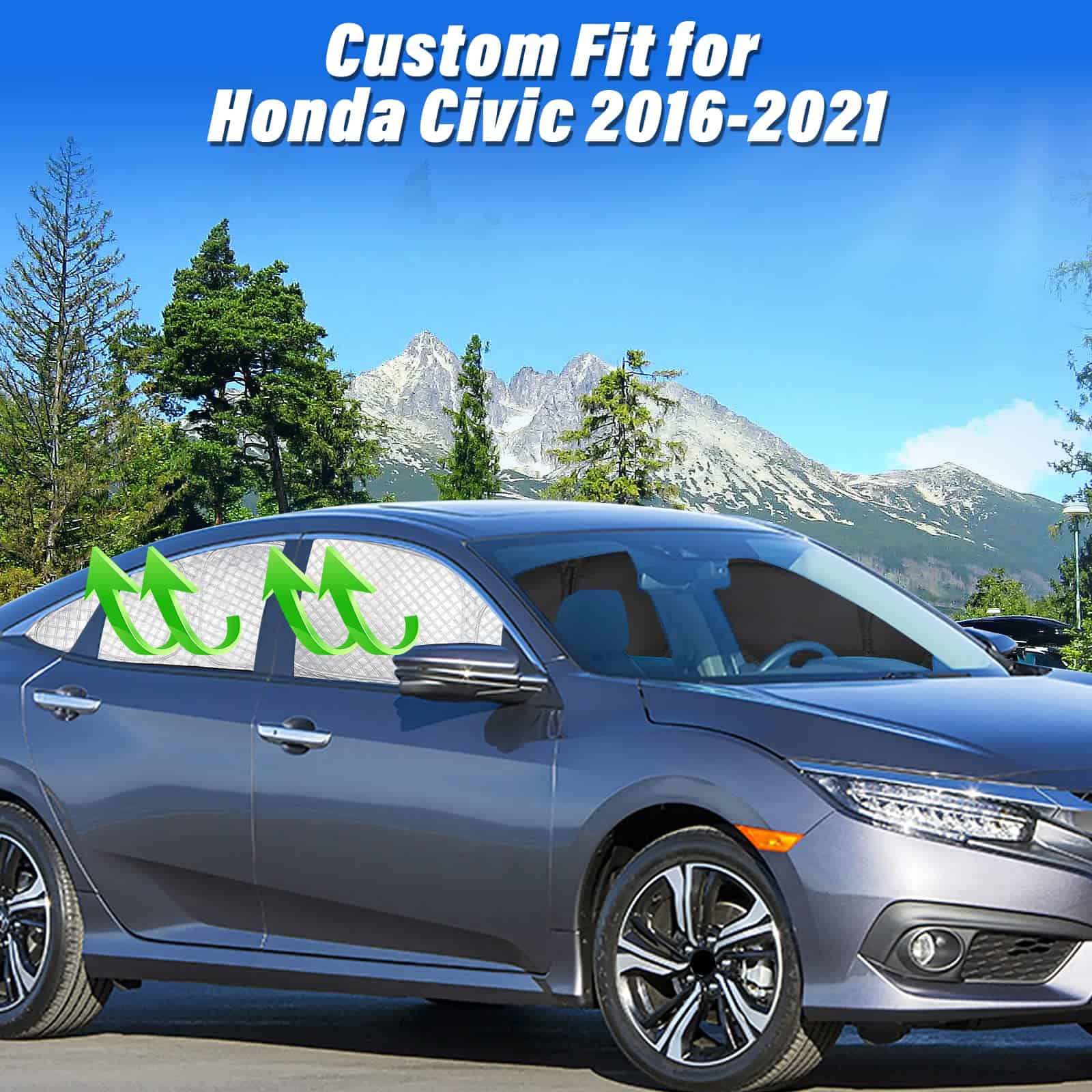 1. PROTECTOR SOLAR DE COCHE PERSONALIZADO: El protector solar para ventanas laterales de KMF está diseñado a medida para Honda Civic 2016-2021. El paquete de 7 incluye 6 protectores para ventanas laterales y 1 para el parabrisas trasero. Se ajusta al 100% a las ventanas de tu Civic.