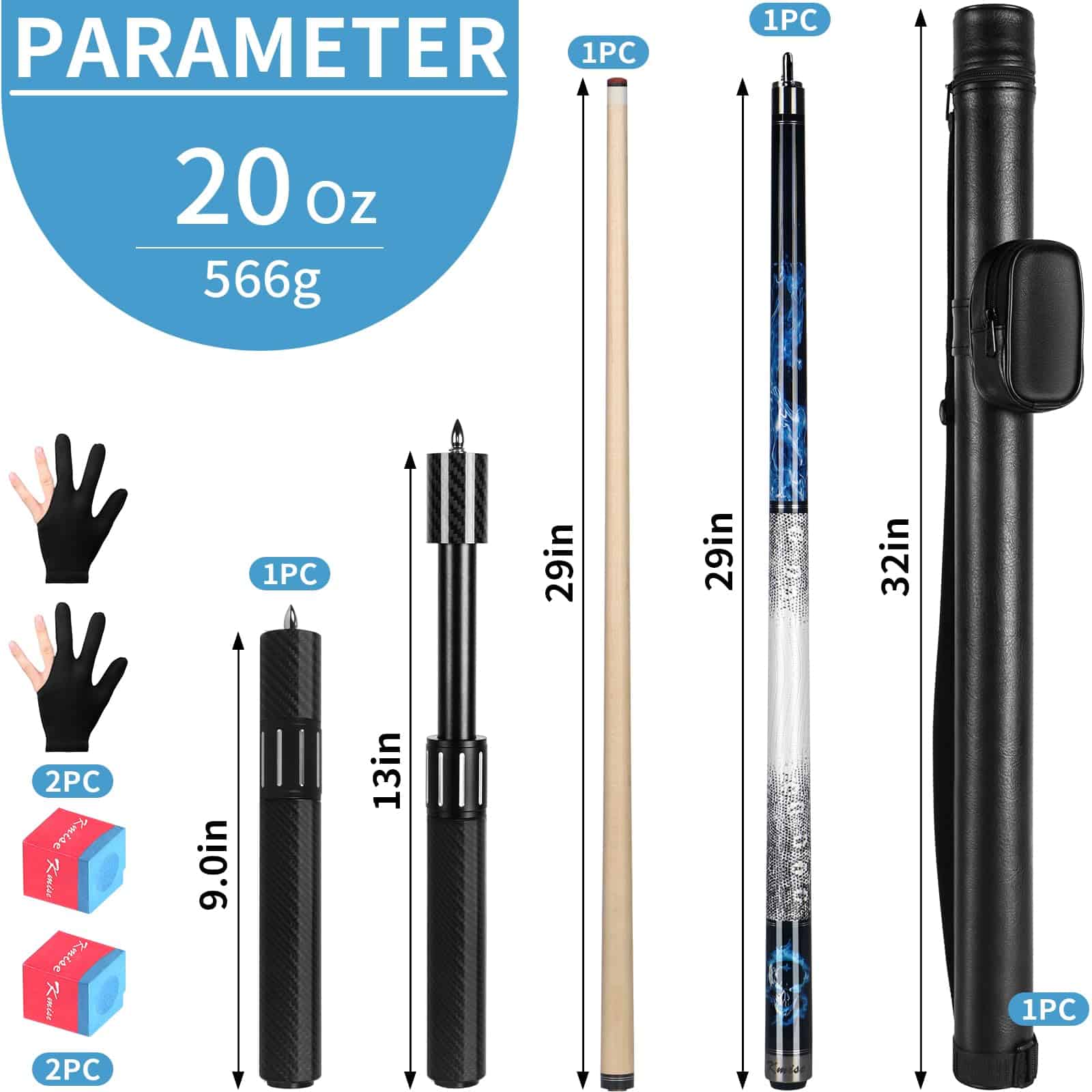 Kmise Taco de Billar de 58» 20oz con Extensión de Fibra