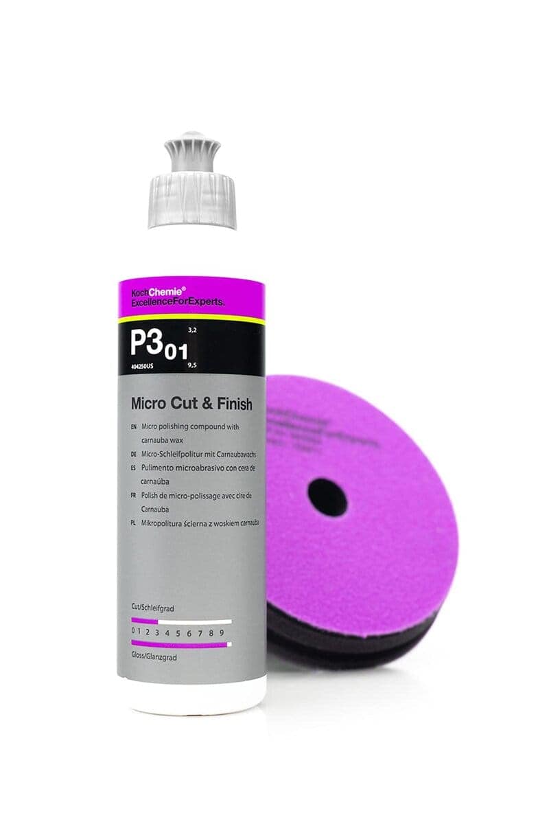 Koch-Chemie Micro Cut & Finish es un compuesto de pulido de última generación que combina la eficacia del pulido con la protección de la cera de carnauba. Esta fórmula única permite la eliminación permanente de hologramas, arañazos finos y marcas de lijado en todos los sistemas de pintura, hasta el grano P3000. Además, brinda un sellado a largo plazo con un alto brillo y suavidad en la superficie tratada. Los hologramas y arañazos finos son eliminados de forma mecánica, sin ser simplemente cubiertos. Koch-Chemie, con su reputación de excelencia en productos de limpieza y cuidado desde 1968, garantiza resultados superiores para expertos en el cuidado de vehículos.