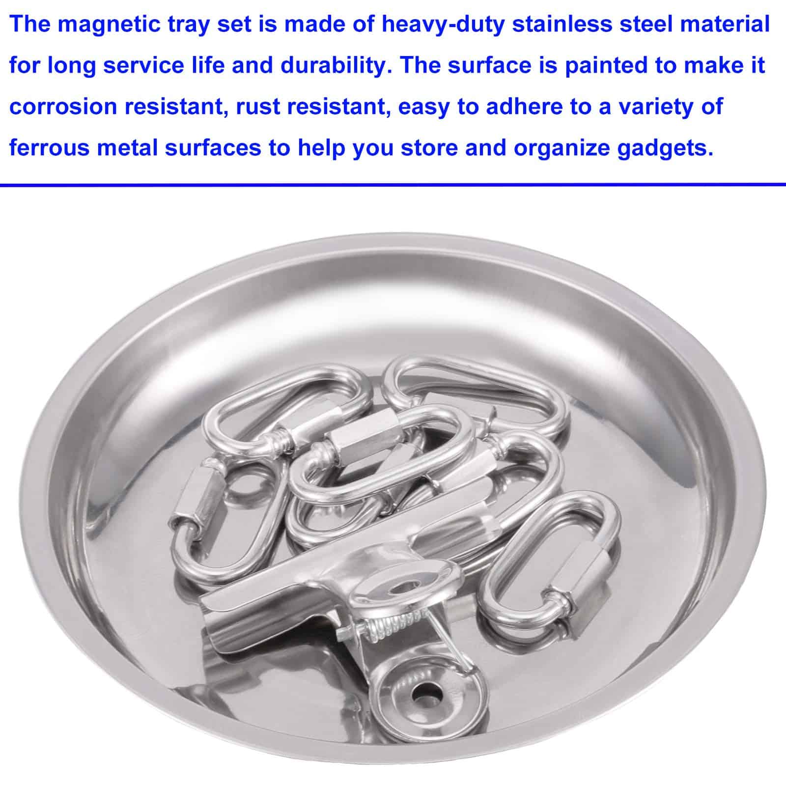 Hechos de acero inoxidable de alta calidad, duraderos y adhesivos. Fáciles de absorber gadgets dispersos, este es un tazón de almacenamiento de herramientas magnéticas muy útil.