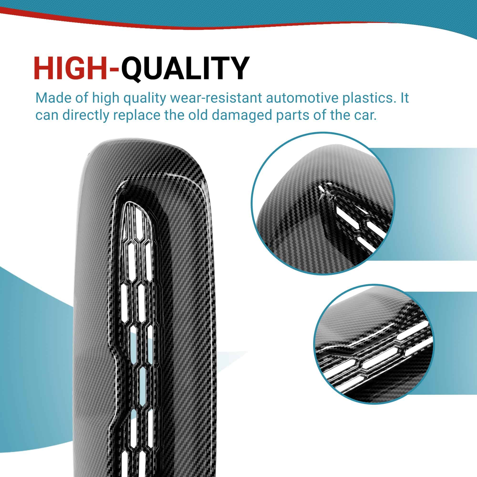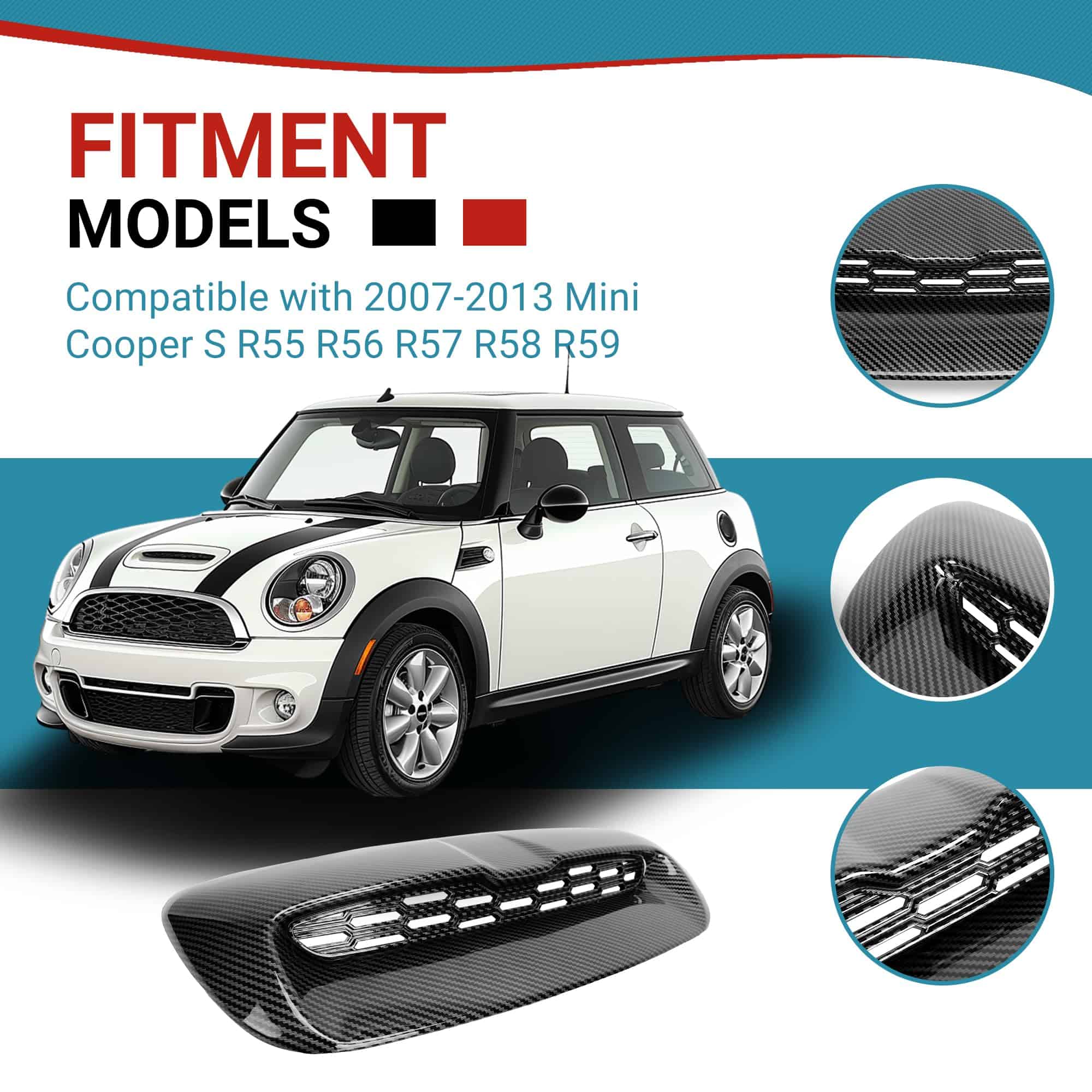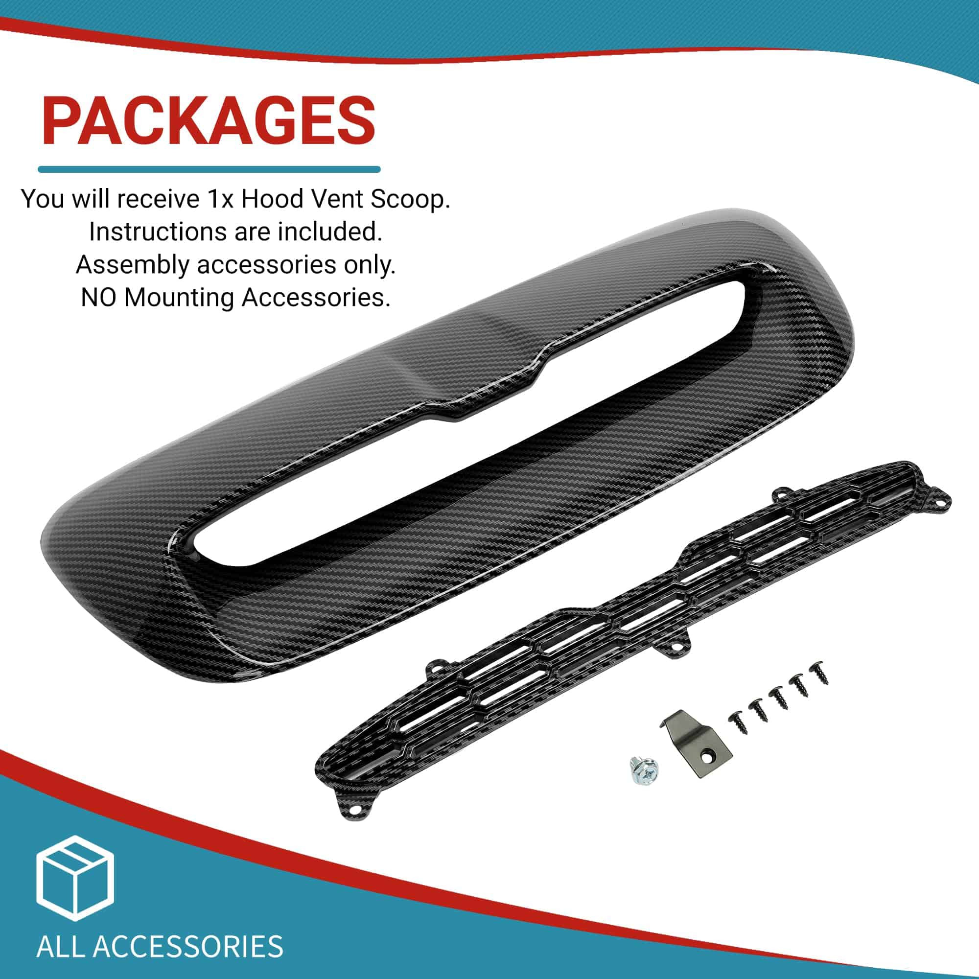 Color: Negro; Material: Plástico; Paquete: 1 Kit de Entrada de Aire para Capó. Acabado de Superficie: Pintado Negro. Este producto está hecho de plásticos automotrices de alta calidad resistentes al desgaste. Puede reemplazar directamente las piezas viejas dañadas del auto. La cubierta de admisión de aire ayuda a la disipación del calor del motor, promueve la circulación del aire, maximiza la descarga de calor, asegura el rendimiento del auto. Procedimientos de control de calidad estandarizados para garantizar la calidad. La superficie de este capó está tratada con pintura negra, que es resistente a los rayos UV y no se desvanece fácilmente, y puede hacer frente a todo tipo de clima y entorno. Gran ajuste e instalación fácil. Se incluyen instrucciones. Solo accesorios de montaje. SIN Accesorias de Montaje. Montaje de tornillo. Se recomienda la instalación profesional.