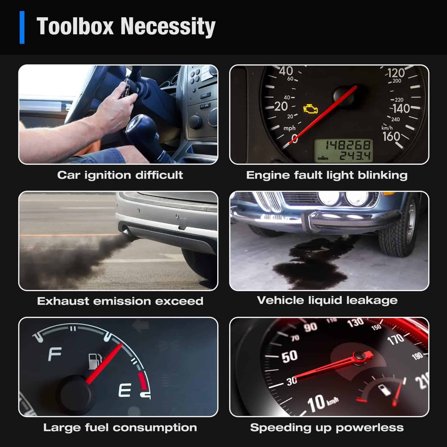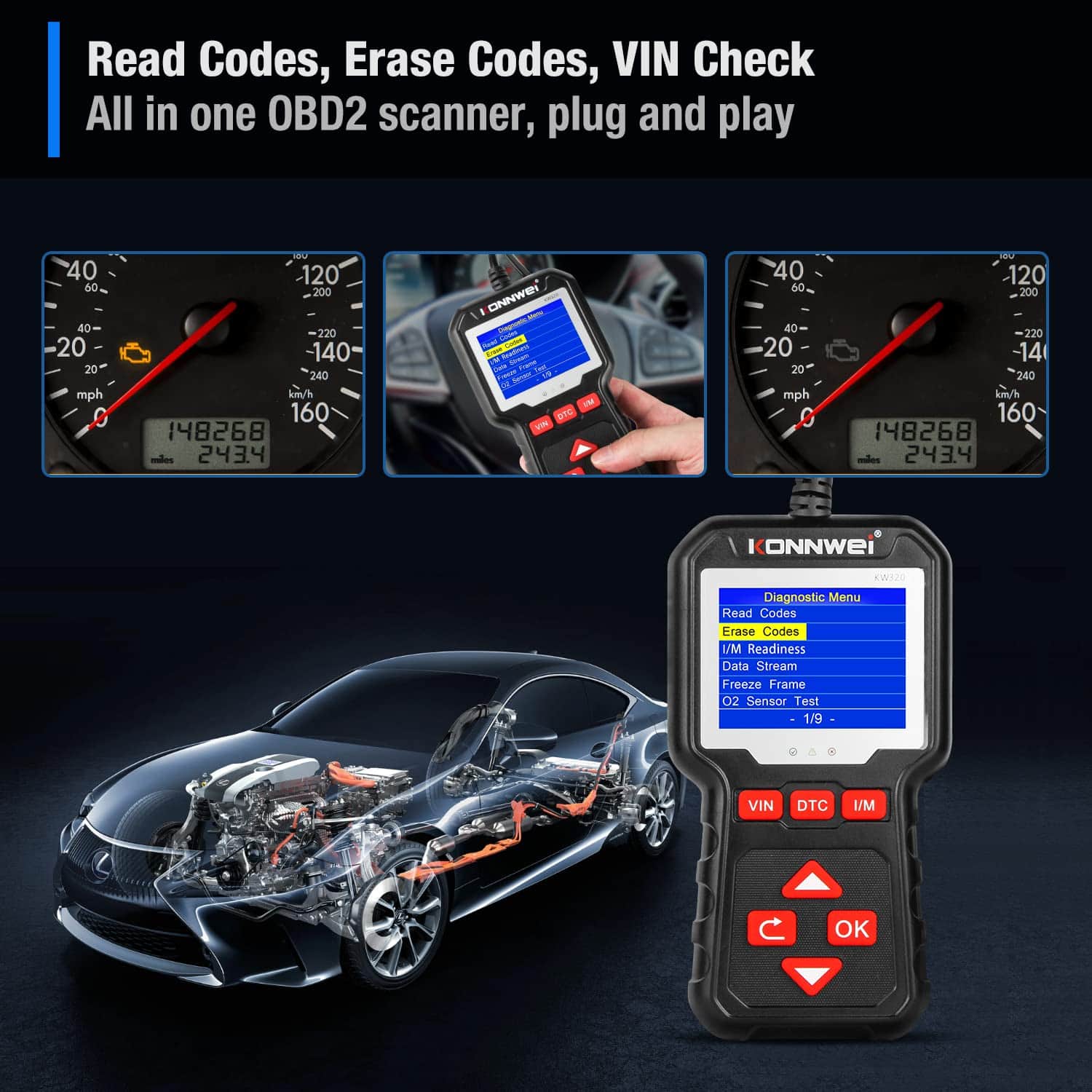 4. DIAGNOSTICA TU AUTO POR TU CUENTA Plug and play con un menú principal claro, no se necesita una aplicación adicional. Incluso si no estás familiarizado con la reparación de vehículos, puedes controlar fácilmente este lector de computadora para automóviles, quedarte en casa y obtener la información que deseas para luego reparar el automóvil por ti mismo.