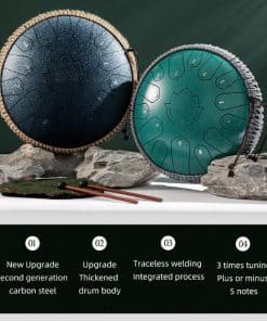 Descripción: 1. Material y artesanía de acero inoxidable Material de acero al carbono, actualización a prueba de óxido engrosada, cuanto más grueso sea el cuerpo del tambor, más estable y puro será el sonido, el tambor de lengüeta puede producir un sonido limpio y etéreo. 2. Hecho a mano por artesanos recubierto con pintura en aerosol protectora para evitar el deslustre. Después del tratamiento térmico para eliminar el estrés, la eliminación de la capa de óxido, el pulido, el granallado, la pintura y otros procesos de producción. Lista de Paquetes: 1 bolsa de tambor especial 1 par de baquetas 1 dedal de dedo 1 pegatina de escala de repuesto 1 Manual de usuario en inglés