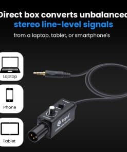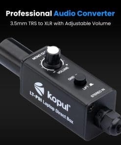 La Kopul LT-PDI Laptop One-Channel Passive Direct Box es la solución perfecta para convertir señales de audio desbalanceadas en señales balanceadas, brindando un sonido claro y libre de ruido en sistemas de PA, consolas de mezcla y interfaces de audio. Esta caja directa pasiva de alta calidad es ideal para su uso con laptops, smartphones, tablets y otros dispositivos de audio, ofreciendo una conexión sin problemas a sistemas de PA y grabadoras. Con un interruptor de levantamiento de tierra integrado, este DI box estéreo elimina zumbidos y ruidos no deseados, garantizando un audio limpio y libre de interferencias al conectar su dispositivo a sistemas de sonido o mezcladoras. Su diseño duradero y compacto de aluminio lo hace fácil de transportar y perfecto para profesionales en movimiento. Además, la Kopul LT-PDI es compatible con una amplia gama de dispositivos de AV, lo que la convierte en una excelente opción para entornos en vivo y de estudio. ¡Obtén la mejor calidad de audio con la Kopul LT-PDI Laptop One-Channel Passive Direct Box!