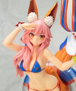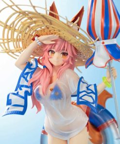 Desde Kotobukiya. Del popular juego de smartphone «Fate/Grand Order» llega una figura de Tamamo no Mae, la autoproclamada «buena esposa» con orejas de zorro, en la versión de traje de baño de la sirvienta Lancer vista en el evento limitado «Natsu da! Umi da! Kaitaku da! FGO 2016 Summer Chaldea Summer Memory»! Está esculpida basada en la ilustración de la 2ª etapa de Ascensión, con un parasol de playa sostenido en lugar de la lanza y un sombrero de paja recreados fielmente con muchos detalles. Su camiseta y toalla se pueden quitar para revelar su bikini y su linda pose ligeramente inclinada hacia adelante. ¡Puedes exhibirla ya sea con la camiseta mojada mostrando su piel debajo o solo con el bikini! ¡Disfruta de la 2ª etapa de la buena esposa zorro en unas vacaciones de verano! ¡Asegúrate de añadir esta elegante Tamamo a tu colección!