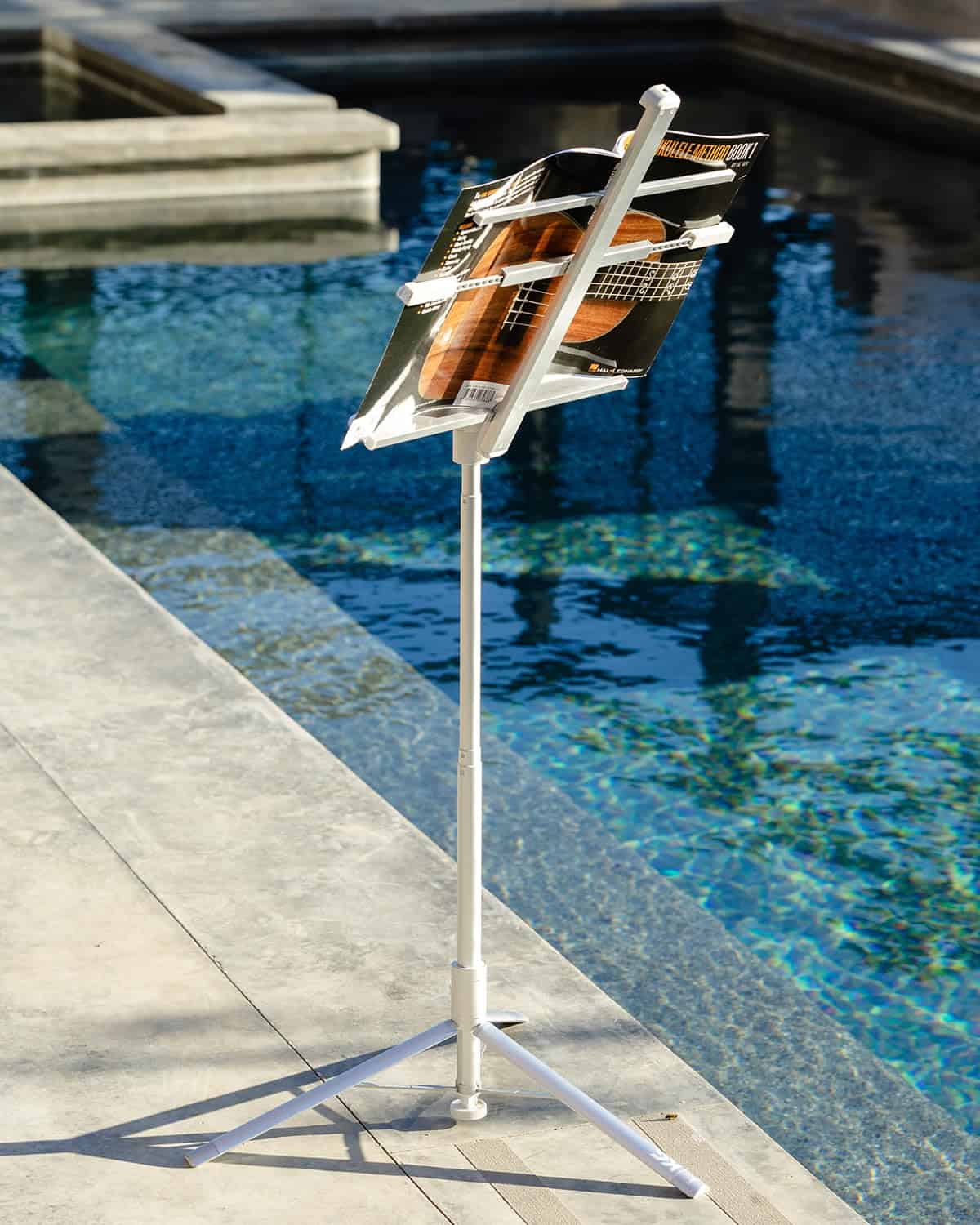 7. Conectividad Universal: Con dos puertos estándar de tornillo de 1/4 de pulgada, nuestro soporte para partituras se conecta perfectamente con varios accesorios como luces, micrófonos, abrazaderas para teléfonos/tabletas y cámaras de acción para mejorar las actuaciones musicales.