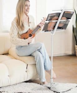 6. Bandeja de Música Expandible con Clips: El atril de música plegable cuenta con una bandeja de música expandible que acomoda fácilmente hojas de música de A4 a A3; Con un clip transparente incorporado, nuestro atril de música mantiene sus hojas abiertas y visibles, ofreciendo claridad para un flujo musical ininterrumpido.