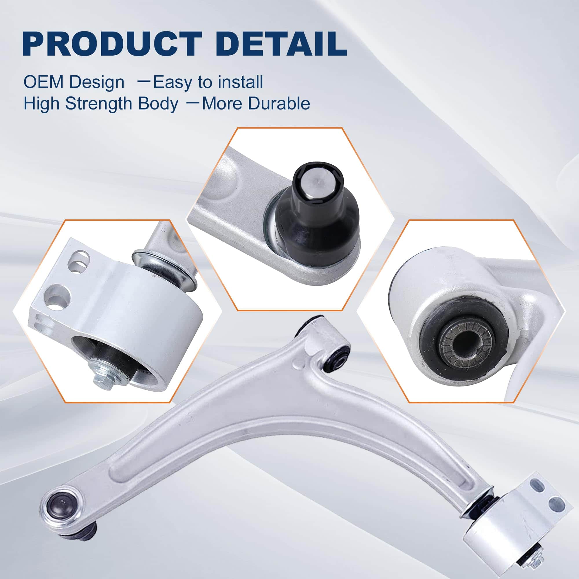 Diseño OEM: Las piezas de repuesto OEM en nuestros kits no solo garantizan una alineación precisa de las ruedas y una mayor capacidad de respuesta de la dirección, sino que también facilitan la instalación sencilla, específicamente diseñada para los brazos de control sin necesidad de modificaciones.