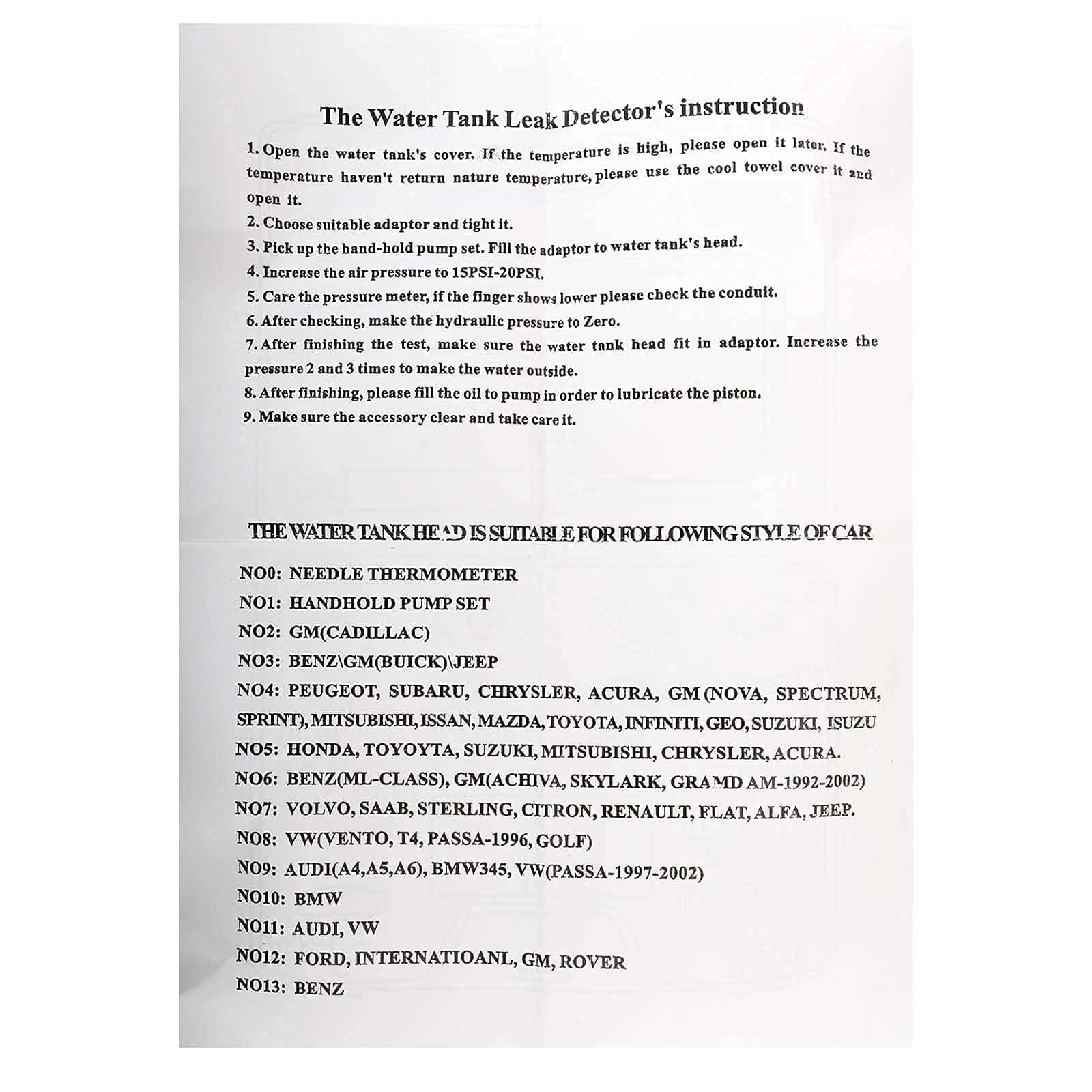 El probador ayuda a detectar fugas internas y externas. Perfecto para la detección de fallas de junta de culata (¿qué lado del bloque o qué cilindro tiene fugas?) .