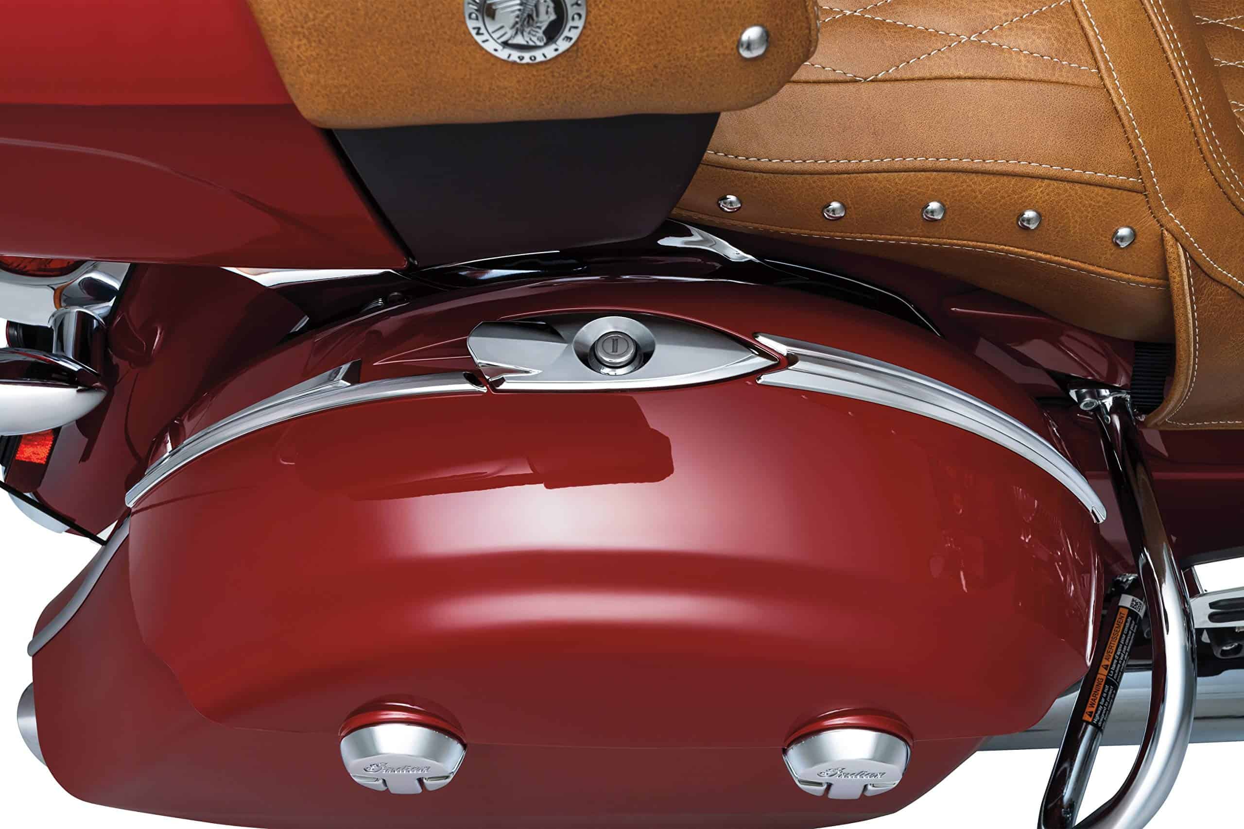 La moldura superior cromada Kuryakyn 5670 es el accesorio perfecto para resaltar las curvas de tus alforjas duras de Indian. Estas están cromadas de ABS con fácil instalación mediante el adhesivo 3M VHB de alta resistencia. Incluye (1) acento frontal izquierdo cromado, (1) acento frontal derecho cromado, (1) acento trasero derecho cromado, (1) acento trasero izquierdo cromado, (2) almohadillas de alcohol; herramientas sugeridas para la instalación (no incluidas): agua caliente y jabonosa, trapo limpio, cinta de enmascarar o de pintor y un marcador. La moldura superior cromada Kuryakyn 5670 es compatible con modelos Indian: ’14-’19 Chieftain, Roadmaster (excluye Roadmaster Classic, ’19 Chieftain, Chieftain Dark Horse y Chieftain Limited) y Springfield’s.