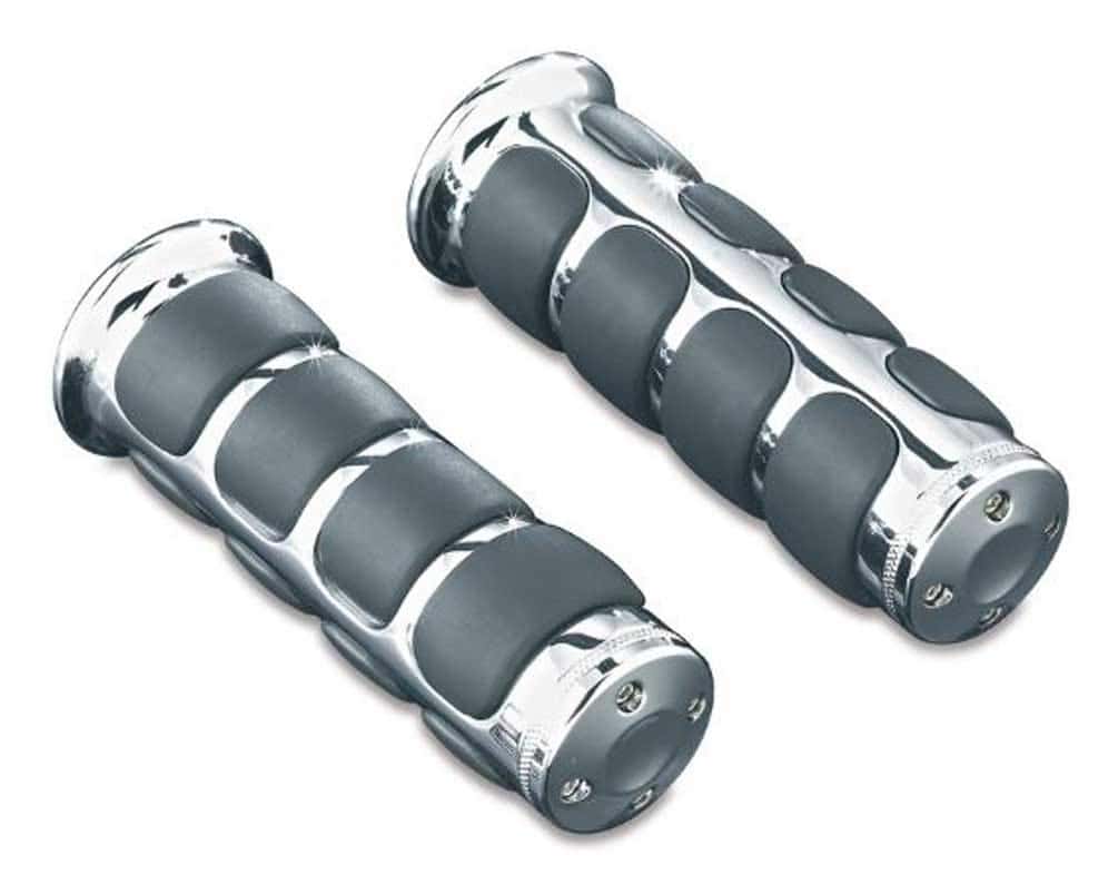 Los puños para manillar Kuryakyn 6227 Premium ISO para control de acelerador electrónico brindan la mejor experiencia en comodidad y estilo para los motociclistas. Diseñados para ofrecer comodidad en viajes largos, los puños ISO cromados colocan los agarres para amortiguar la vibración del manillar y proporcionan una superficie suave y antideslizante. Presentan recesos únicos entre las almohadillas de agarre para permitir el flujo de aire y brindar alivio adicional del calor. Gracias a las tapas de extremo extraíbles únicas, los puños pueden ser utilizados con manillares de tipo con depósito de aire de fábrica. Incluye (1) puño ISO para embrague cromado, (1) puño ISO para acelerador cromado para control electrónico y (1) tubo de adhesivo; herramientas sugeridas para la instalación (no incluidas) son juegos de llaves torx o allen, llaves combinadas, cuchillo multiusos, papel de lija de grano 80-100 y solvente adhesivo. Los puños para manillar Kuryakyn 6227 Premium ISO para control de acelerador electrónico son compatibles con acelerador de giro y se ajustan a modelos Harley-Davidson: ’08-’19 H-D con control de acelerador electrónico (excluye modelos ’18-’19 FLTRXSE).