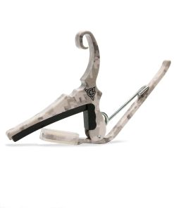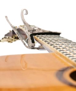 Un afinador de guitarra Quick-Change de Kyser está diseñado y construido expertamente para durar. Es confiable y hace exactamente lo que se supone que debe hacer: elevar claramente el tono de la guitarra acústica de 6 cuerdas para que puedas tocar en una tonalidad diferente sin necesidad de afinar de nuevo o cambiar el dedeo. Tanto los profesionales experimentados como los principiantes aprecian cómo el afinador de guitarra Quick-Change de Kyser les ayuda a transponer su guitarra en cuestión de segundos, con solo una mano. La belleza del afinador de guitarra Quick-Change de Kyser está en su simplicidad. Kyser fue pionero en este diseño y, aunque a menudo es imitado, un Kyser nunca es igualado. No hay sustituto para un afinador de guitarra Quick-Change genuino de Kyser. Hecho a mano en Texas, EE. UU. Garantizado de por vida. Acabado de estilo palo de rosa – no es madera real.