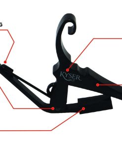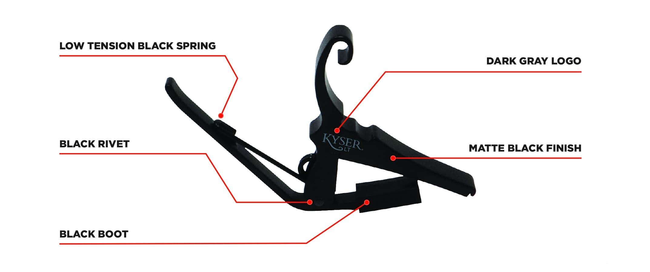 Este Kyser Low-Tension Quick-Change Capo tiene un 25% menos de tensión en el resorte para un ajuste aún más fácil. Muchas guitarras modernas tienen cuellos más delgados y configuraciones de acción baja, donde las cuerdas están cerca del diapasón. Esto facilita la ejecución y, debido a esto, se requiere menos tensión en el resorte para presionar todas las seis cuerdas por completo al usar un capo. El Kyser Low-Tension Quick-Change Capo permite a los guitarristas obtener fácilmente la cantidad perfecta de tensión al cambiar de tonalidad hacia arriba y hacia abajo del mástil sin preocuparse por que las cuerdas se desafinen por demasiada presión. El Kyser Low-Tension Quick-Change Capo es el mismo diseño probado y verdadero en el que confían músicos de todo el mundo y ahora está disponible en un acabado mate negro de baja tensión – acabado negro mate, resorte negro, protector negro, remache gris oscuro, logotipo gris oscuro. El Kyser Low-Tension Quick-Change Capo funciona tanto en guitarras acústicas como eléctricas de 6 cuerdas. La belleza del capo Quick-Change de Kyser está en su simplicidad. Kyser fue pionero en este diseño y aunque a menudo imitado, un Kyser nunca tiene igual. No hay sustituto para un capo Quick-Change genuino de Kyser. Hecho a mano en Texas, EE. UU. Garantizado de por vida.