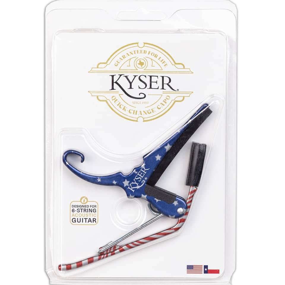 Un capo Quick-Change de Kyser está expertamente diseñado y construido para durar. Es confiable y hace exactamente lo que está diseñado para hacer: elevar claramente el tono de la guitarra acústica de 6 cuerdas para que puedas tocar en una tonalidad diferente sin tener que volver a afinar o cambiar los dedos. Tanto los profesionales experimentados como los principiantes aprecian cómo el capo Quick-Change de Kyser les ayuda a transponer su guitarra en segundos, con una sola mano. La belleza del capo Quick-Change de Kyser radica en su simplicidad. Kyser fue pionero en este diseño y aunque a menudo imitado, un Kyser nunca es igualado. No hay sustituto para un auténtico capo Quick-Change de Kyser. Hecho a mano en Texas, EE. UU. Garantizado de por vida.