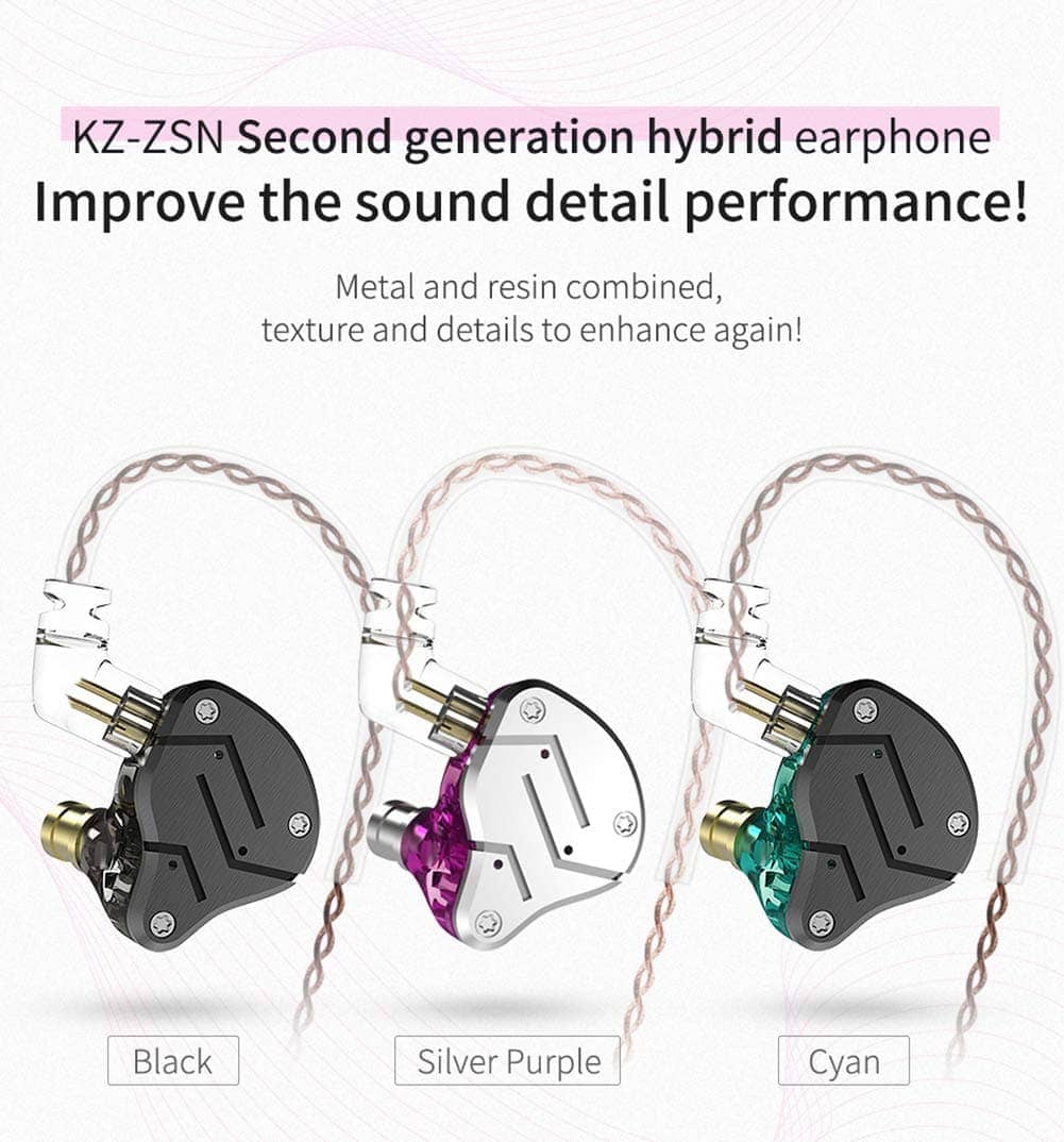 KZ ZSN Hybrid Driver IEM Cable desmontable libre de enredos