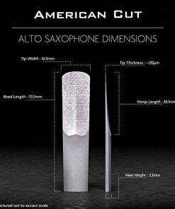 El American Cut es el resultado de un proyecto de investigación de 6 años para mejorar nuestra tecnología de la Serie Signature y crear una caña que responda a las necesidades de los músicos de jazz más exigentes del mundo. Estoy orgulloso de decir que el American Cut cumple con todo lo que nos propusimos lograr, y mucho más. Desde la primera nota, la caña habla sin titubeos. Es fácil de soplar, receptiva, colorida y llena de personalidad. El inconfundible carácter de la caña se debe a un perfil y corazón completamente reinventados, y a un vamp es más corto y ancho. Al extraer material de los bordes hacia la columna central, la caña logra un equilibrio armonioso entre la capacidad de respuesta y el control. Los bordes ultrafinos permiten una vibración sin restricciones, recompensando al músico con un registro grave claro y un altísimo vibrante.