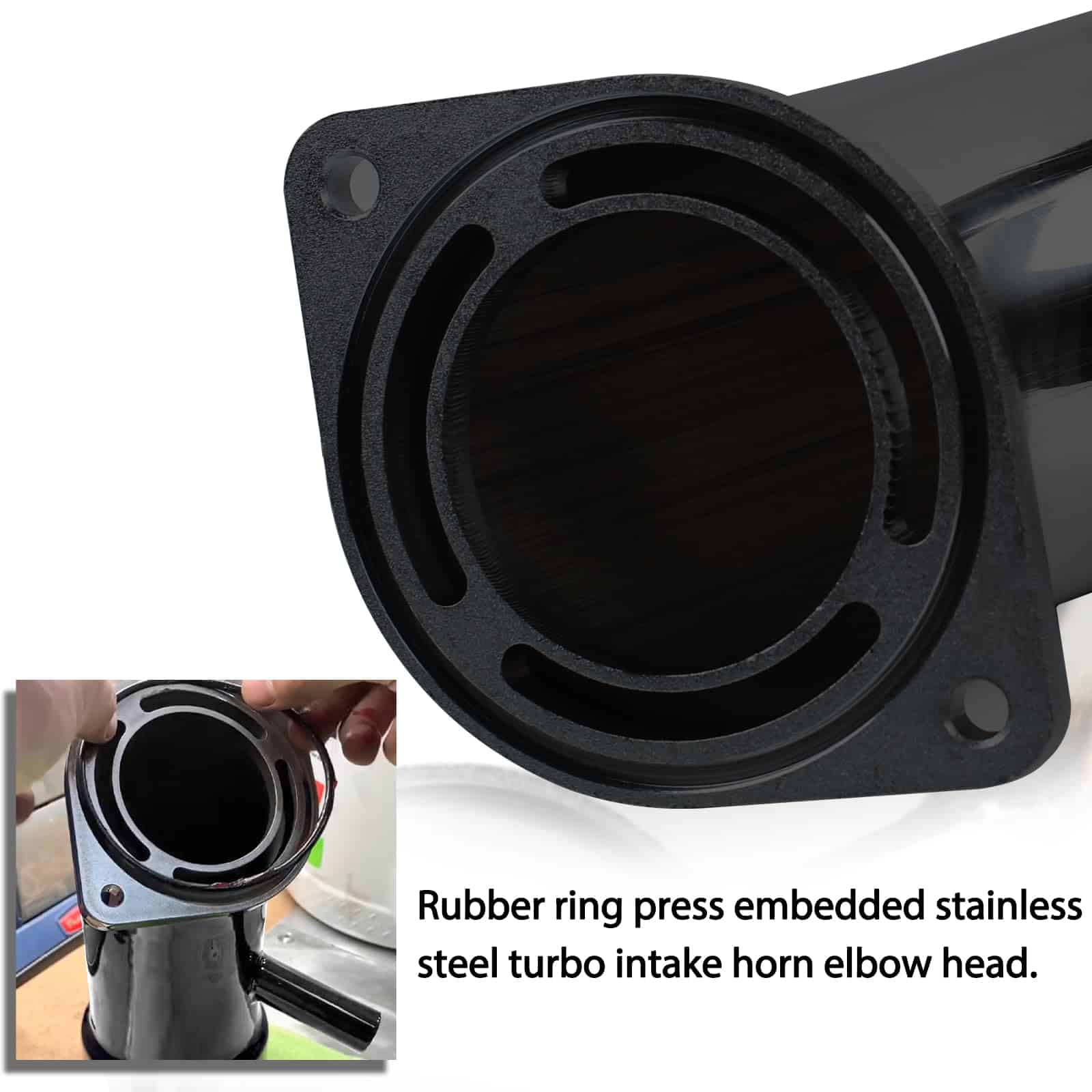 Codo de Admisión turbo de 3.5″ para reemplazar la pieza de fábrica más pequeña y frágil. Hecho de acero inoxidable de alta calidad con acabado pulido.