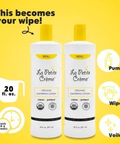 La Petite Creme Loción Premium Francesa para Cambiar Pañales es un producto esencial para el cuidado de tu bebé recién nacido. Esta loción para bebés orgánica y natural es una excelente alternativa a las cremas para pañales tradicionales y las toallitas para bebés. Con ingredientes orgánicos certificados por el USDA, esta loción para bebés es segura y efectiva para la delicada piel de tu bebé.
