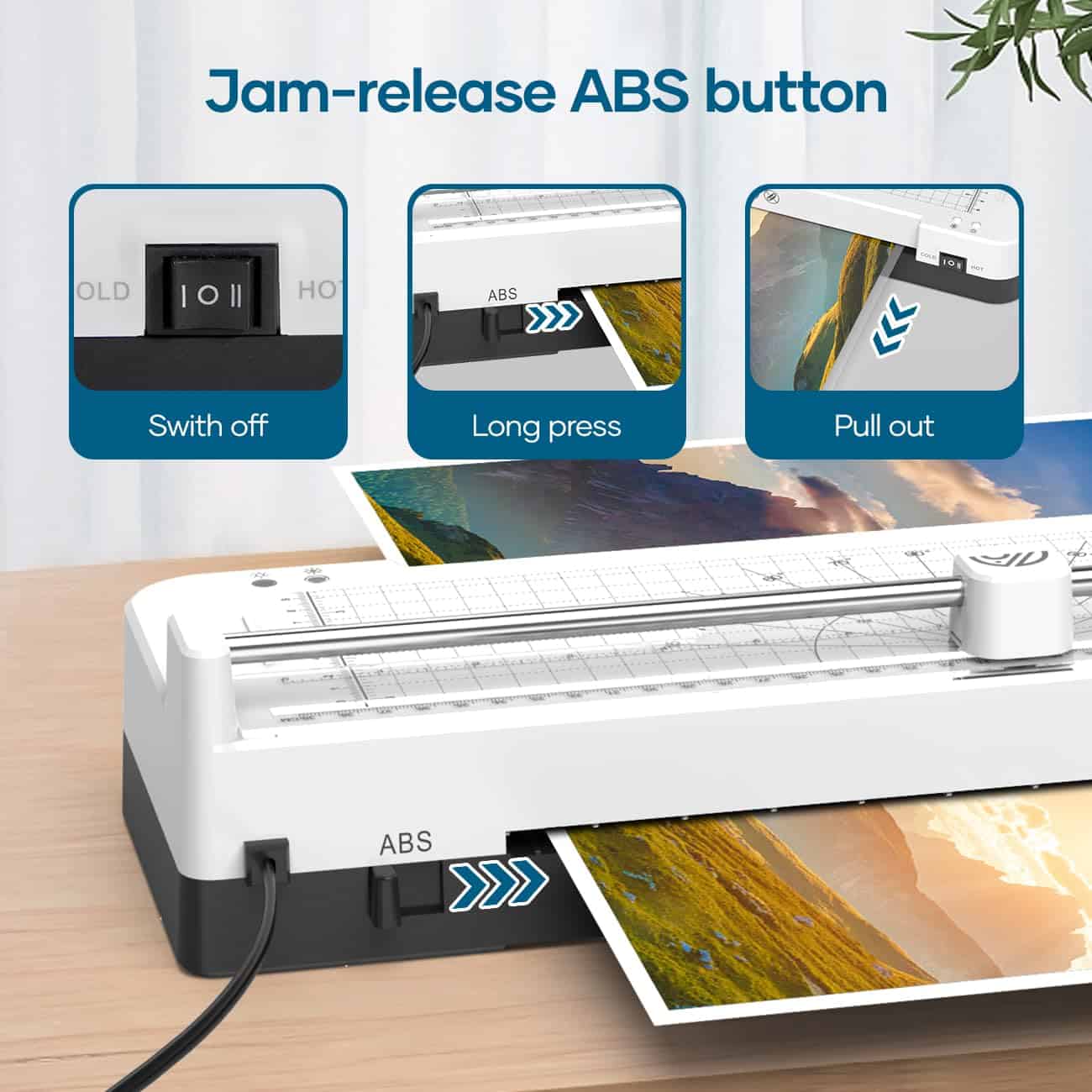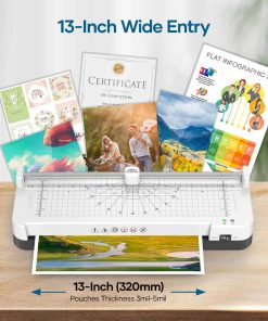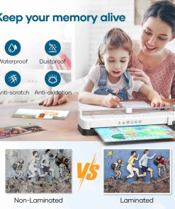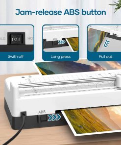 4. Laminadora 100% Sin Atascos: La máquina de laminar cuenta con un botón de liberación rápida de ABS. Si hay atascos de papel, simplemente apague la laminadora y presione el botón ABS, luego saque el papel de la laminadora. Esto protege sus documentos importantes. ¡Diga adiós a los atascos de papel de forma fácil! 5. Laminado Rápido y de Alta Calidad: Nuestra máquina laminadora personal se calienta en solo 120 segundos, ¡diciendo adiós a largos tiempos de espera! Con una velocidad de laminado de 360 mm/min, asegura resultados profesionales, sin burbujas y sin arrugas, haciendo que sus documentos sean más bonitos, claros y duraderos. 6. Laminadora con Amplias Aplicaciones y Protección de Documentos: Perfecta para uso en oficinas, escuelas, hogares y empresas, como fotos, tarjetas del Día de la Madre, tarjetas del Día del Padre, certificados, contratos, menús, pinturas, y los protege del agua, el polvo, la decoloración y los arañazos.
