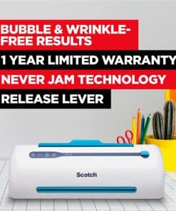 La Laminadora Térmica Scotch PRO TL906 te ayuda a crear documentos laminados profesionales de alta calidad. Esta máquina para laminar térmica tiene dos rodillos calentados con dos ajustes de temperatura para crear resultados libres de burbujas y arrugas. Como un ahorro de tiempo para tu hogar, oficina y material escolar, esta laminadora térmica se calienta en cinco a seis minutos y lamina a una velocidad de 15 pulgadas por minuto para ahorrarte tiempo. Los controles LED hacen que operar esta máquina laminadora sea simple, mientras que la Tecnología Anti-Atascos evita el problema de documentos mal alimentados y protege los documentos de daños. El apagado automático después de una hora ayuda a conservar energía cuando esta máquina laminadora no está en uso. La máquina laminadora Scotch TL906 es compatible con elementos de hasta 9 pulgadas de ancho y con bolsas de laminado de 3 o 5 mil de grosor para un uso versátil. Utiliza esta laminadora para hacer que tus artículos de papel sean a prueba de marcadores, a prueba de desgarros y a prueba de derrames para un uso duradero en el hogar, la oficina o el aula. Prueba a laminar tarjetas de presentación, tarjetas de recetas, horarios, certificados, listas de quehaceres, obras de arte de niños y otros documentos de uso frecuente. Esta laminadora también es segura de usar en fotos para preservar recuerdos. Un paquete contiene una Laminadora Térmica Scotch. Para obtener los mejores resultados, utiliza la Laminadora Térmica Scotch PRO TL906 con las Bolsas de Laminado Scotch.