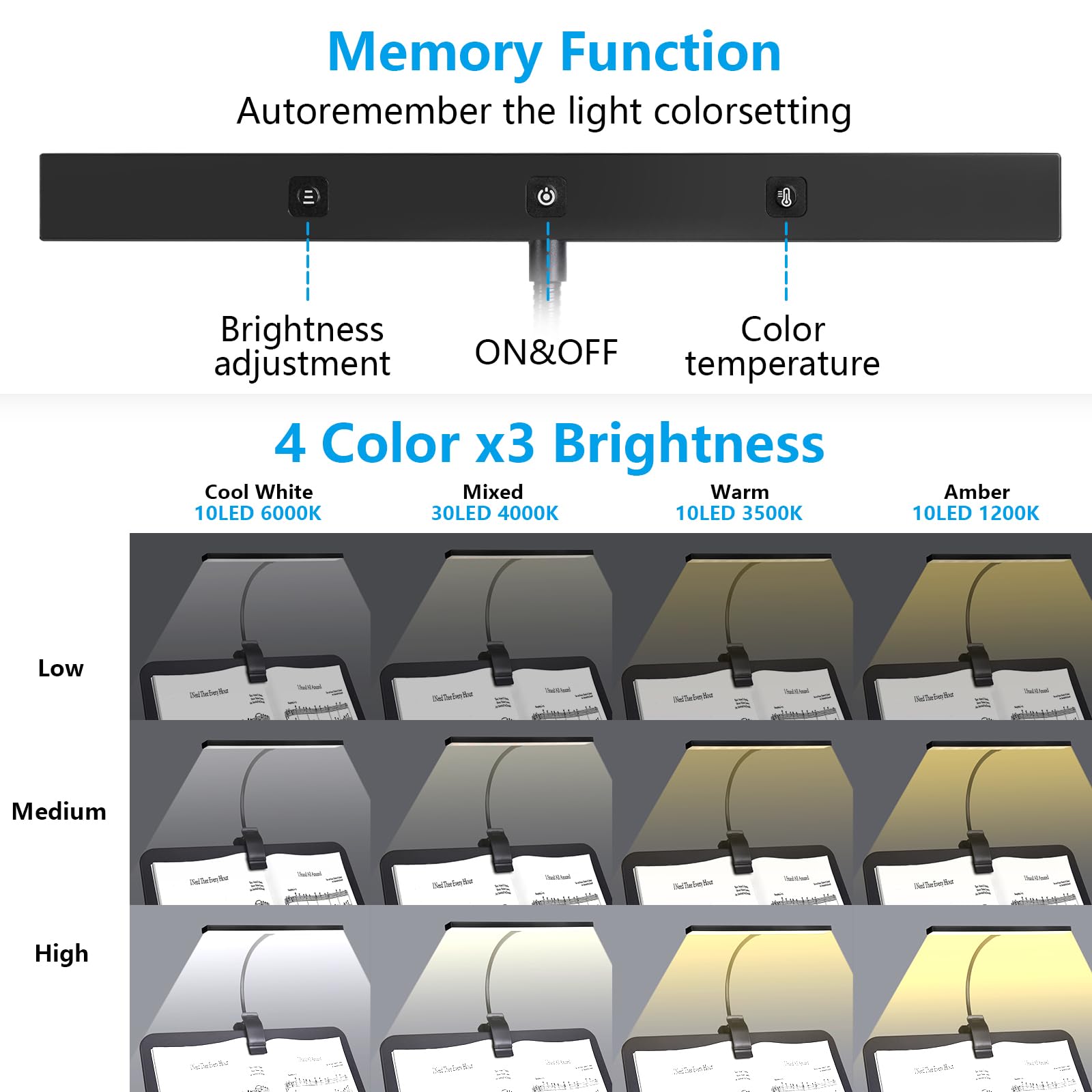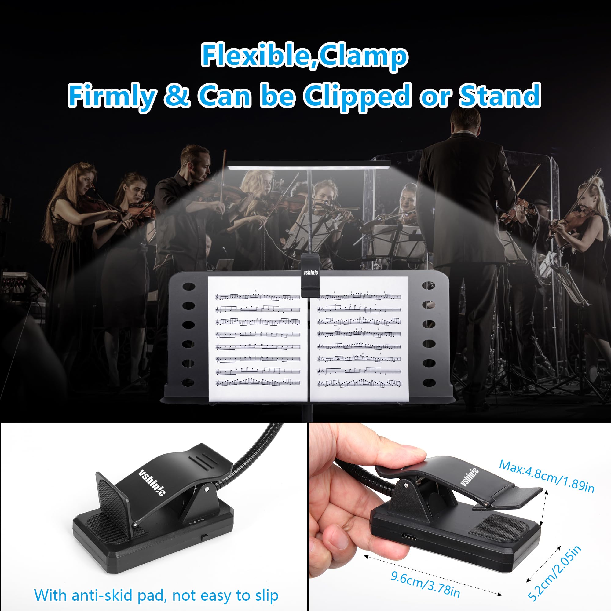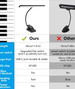¡La mejor elección para músicos, lectores y trabajadores! Lámpara de atril con colores y brillos ajustables, se puede usar como lámpara de escritorio estándar o luz de podio. Recargable por USB y eficiente energéticamente, ideal para stands de música, lecturas, tocar piano, mesas de trabajo, DJ’s, mesas de artesanía, computadoras, entre otros.