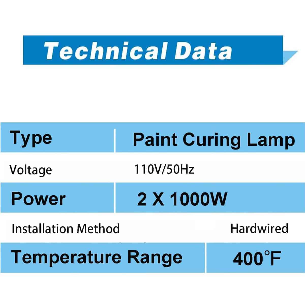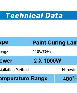 Lámpara de Calefacción Infrarroja para Pintura Automotriz TFCFL, juego de 2 lámparas de 2000W y 110V para cabinas de pintura automotriz. Estas lámparas utilizan calefacción por infrarrojos para evitar la contaminación secundaria, calentando solo objetos en el rango infrarrojo y logrando una pintura más limpia y de mejor calidad. Cada lámpara de pintura está equipada con 2 lámparas halógenas de 1000W, son fáciles de instalar, se calientan rápidamente y pueden oscilar hacia arriba y hacia abajo. El tubo de calefacción de fibra de carbono de 2000W garantiza la protección ambiental al no liberar aire caliente ni causar contaminación secundaria. Estas lámparas son ampliamente utilizadas en cabinas de pintura automotriz, secado parcial de pintura, secado de masilla, calentadores, secadoras de impresión y otros equipos de secado. ¡Contáctenos si tiene alguna pregunta y estaremos encantados de ayudarlo!