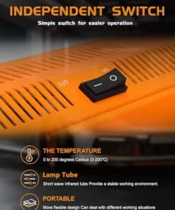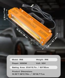 Esta luz de curado infrarrojo tiene una amplia gama de aplicaciones y puede utilizarse para el secado puntual de la pintura y el curado de masilla en cabinas de pintura de automóviles. Es ideal para reparaciones puntuales y secado de motores, incluido el secado efectivo de masilla y primer.