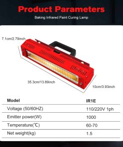 Presentamos nuestra avanzada lámpara de curado de pintura infrarroja, diseñada para aplicaciones automotrices profesionales. Con un generoso área de curado de 0.6 0.38m y una potente lámpara infrarroja de onda corta de 1000W, esta herramienta asegura una penetración profunda en la pintura, mejorando el brillo y la adherencia superficial. ¡Diga adiós a las arrugas y la necesidad de retrabajar!