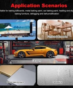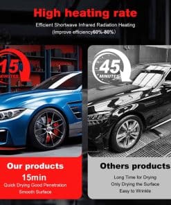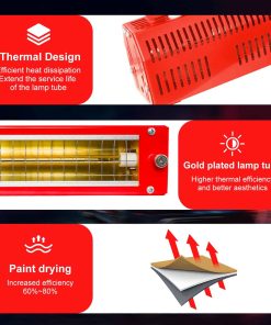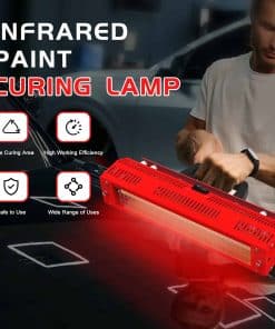 Versátil en sus aplicaciones, esta lámpara de curado infrarrojo se utiliza ampliamente en salas de pintura de automóviles para secado local de pintura y curado de masillas. Es perfecto para reparaciones puntuales y secado de motores, incluido el secado efectivo de rellenos y imprimaciones.