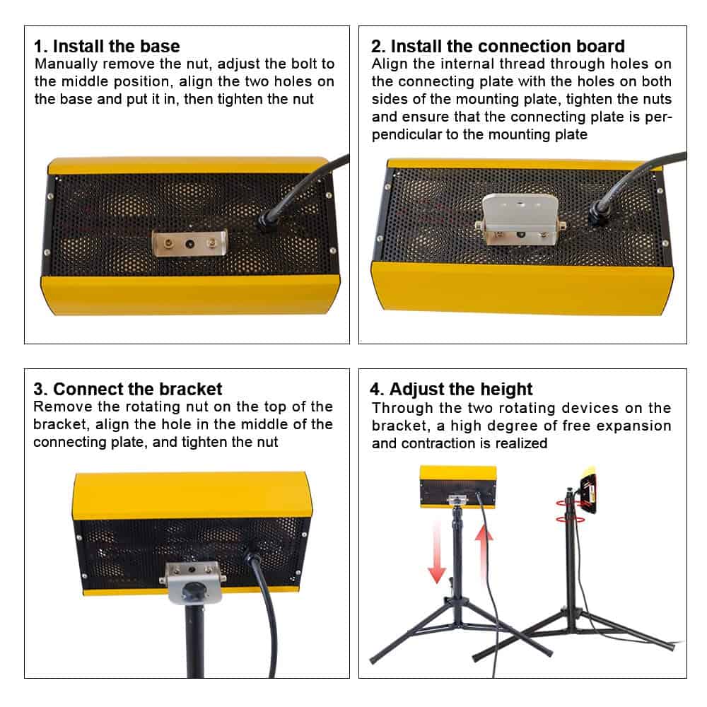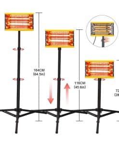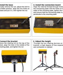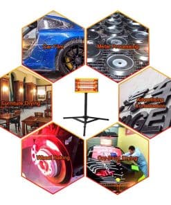 4. FÁCIL OPERACIÓN La lámpara de pintura infrarroja está equipada con una carcasa de lámpara giratoria y una construcción estable de tubo metálico ajustable, rodillos de cojinete de bolas con freno de estacionamiento, es muy conveniente y seguro.