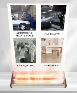 Calentamiento Infrarrojo Lejano Eficiente: Ha adoptado la tecnología de calentamiento por radiación infrarroja lejana, la velocidad de calentamiento de esta lámpara de infrarrojos cura el tiempo es 60% a 80% más rápido, y solo calienta objetos dentro de su rango de infrarrojos, utiliza eficientemente la energía. Hecho de estructura de metal, duradero y resistente. Área de Secado Grande y Monitor de Temperatura Automático: Esta lámpara eléctrica secadora de pintura puede hornear un área de aproximadamente 120×100 cm²/47.2×39.3 pulgadas, y la temperatura de trabajo es ajustable en un rango de 104-212 (40-100 ). Aseguradora de Seguridad: Potencia de lámpara 3000W, 60Hz. Además, la protección automática de sobrecarga de seguridad es para garantizar la seguridad. Esta lámpara calentadora no libera aire caliente ni contaminación secundaria. Fácil Instalación y Operación: Este cuerpo calentador está equipado con carcasa de lámpara giratoria y construcción de tubo de metal ajustable estable, rodillos de cojinetes de bolas con freno de estacionamiento, es muy conveniente y seguro. Diversas Aplicaciones: Nuestros calentadores infratech se utilizan ampliamente en la sala de pintura en spray para automóviles, secado de pintura local, secado de masilla, cabina de pintura en spray para autos, el calentador, máquina de secado de impresión y varios equipos de secado, pintura de muebles y otros campos. Estructura Resistente y Sólida Excelente Eficiencia Térmica Equipado con potentes lámparas infrarrojas de onda corta de 3000W: el calor instantáneo se puede dirigir donde y cuando se requiera. La velocidad de calentamiento es un 60% a 80% más rápida que la tradicional. Protección de Seguridad Funciona con 110V CA, con frecuencia de aproximadamente 60 Hz, la protección automática de sobrecarga de seguridad está diseñada para garantizar seguridad. No hay aire caliente, por lo que la contaminación secundaria se evita eficazmente. Fácil de Instalar y Operar Nuestro sistema de curado infrarrojo es fácil de operar. Cada componente está hecho para durabilidad. También es fácil de instalar, un ajuste perfecto y una sustitución perfecta para la antigua.