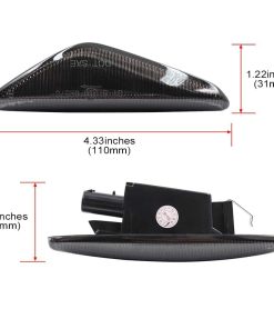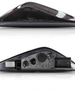 Compatible con BMW F25 X3 2011-2015, BMW E70 X5 2007-2013, BMW E71 X6 2008-2014. Para el Facelift X3 2016-2017 y X4 2014-2018, reemplace los paneles de acabado cromado OEM (51117338569 51117338570), pero necesita pasar los cables para encender estos marcadores laterales LED. Lente humo. LED blanco. Incluye un par (lado del conductor y lado del pasajero) de lámparas de marcador lateral LED para paragolpes delantero, sin errores de CAN-bus. Actualice las luces del marcador lateral a un nuevo aspecto de lente transparente. Fácil de instalar. Retire las lámparas de marcador lateral originales OEM antiguas, saque el marcador lateral OEM del puerto de conexión, instale estos nuevos cables de pigtal…[Truncated]