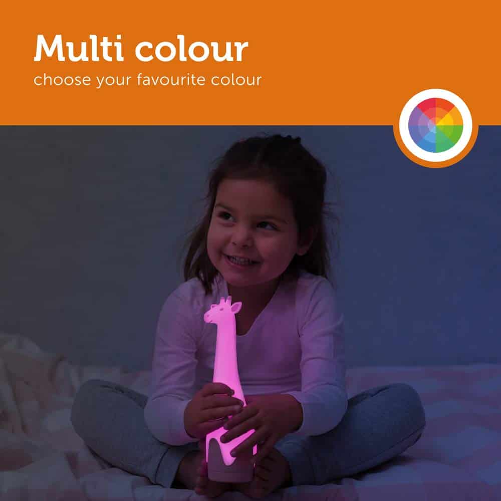 Descripción: Gina es una linterna y luz de noche en una sola. Úsala como linterna para guiar el camino o simplemente para jugar. Por la noche vigila a tu pequeño con su suave luz de noche colorida.