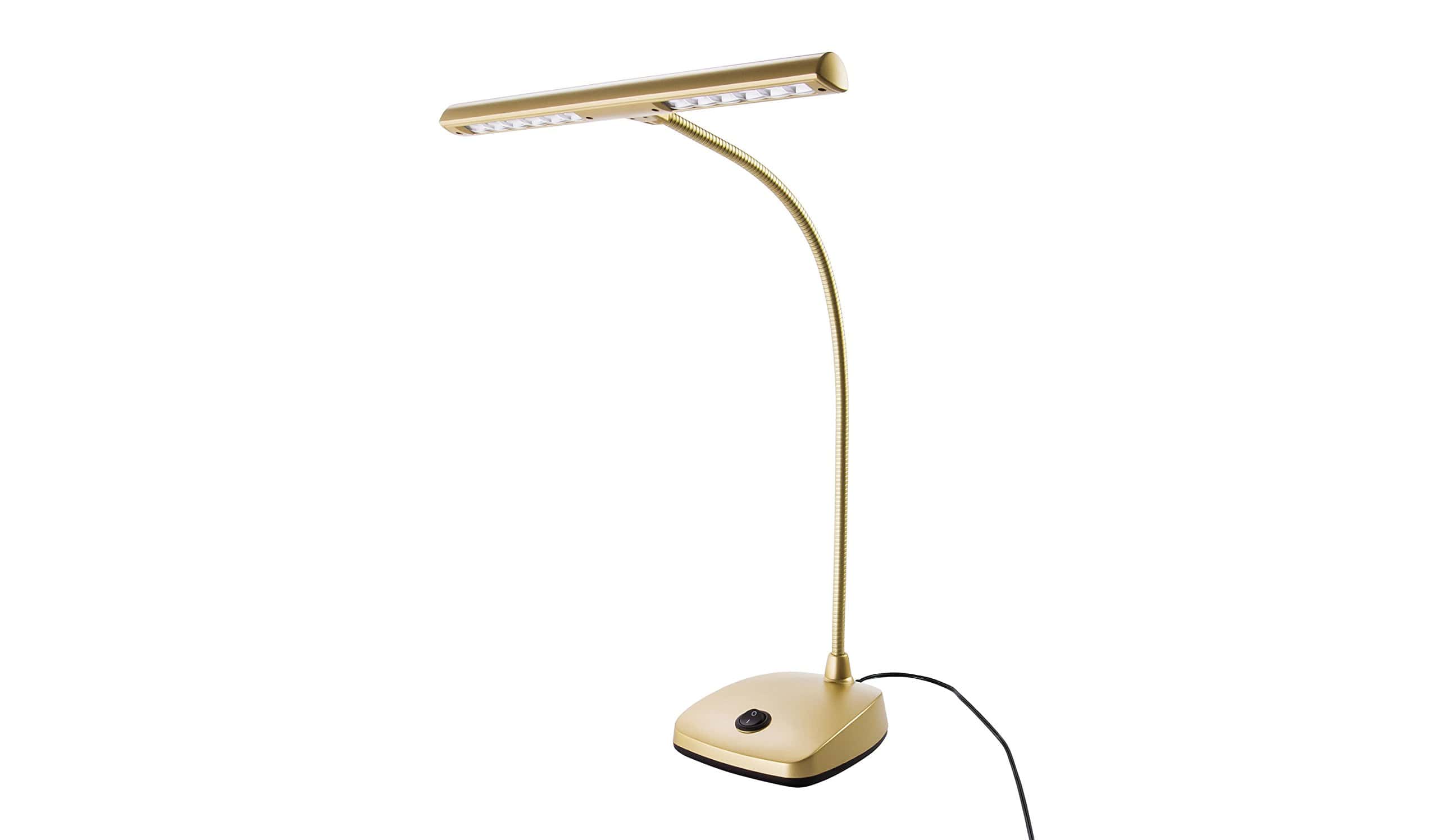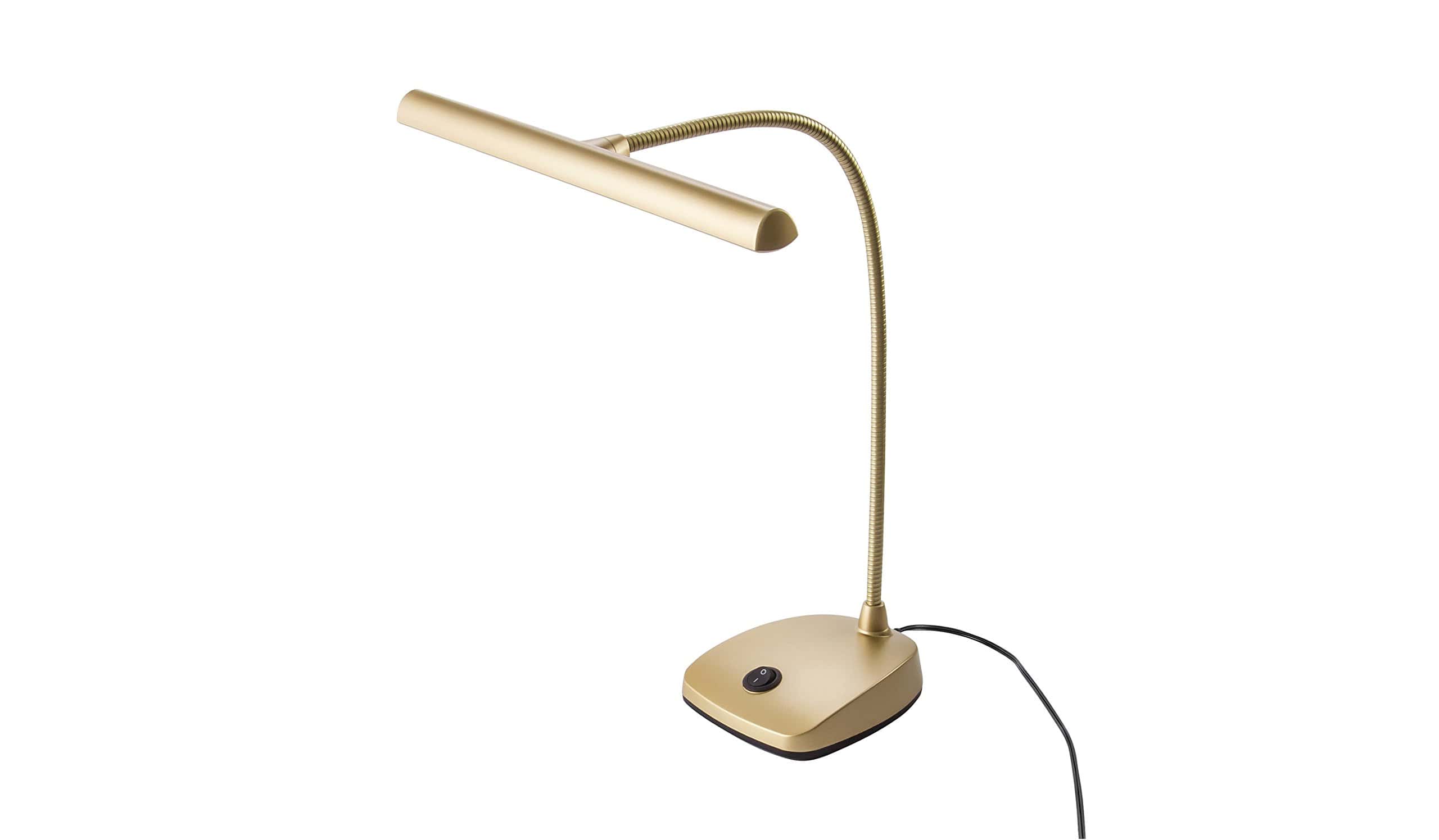 1. LÍDER INNOVADOR EN TECNOLOGÍA DE SOPORTES: La Lámpara de Piano de K&M está elegantemente diseñada para proyectar una luz brillante y cálida, iluminando teclados y partituras. Coloque la base robusta en cualquier lugar del instrumento y luego doble el cuello de ganso para dirigir la luz – donde la necesite.