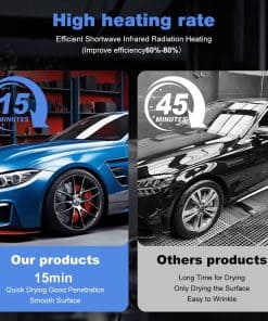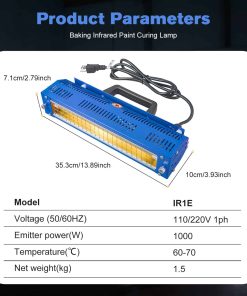 ¡Presentamos nuestra avanzada lámpara de secado de pintura por infrarrojos, diseñada para aplicaciones automotrices profesionales! Con un amplio área de secado de 0.6 x 0.38m y una potente lámpara de infrarrojos de onda corta de 1000W, esta herramienta garantiza una penetración profunda en la pintura, mejorando el brillo y la adherencia de la superficie. ¡Dile adiós a las arrugas y a la necesidad de retrabajo!