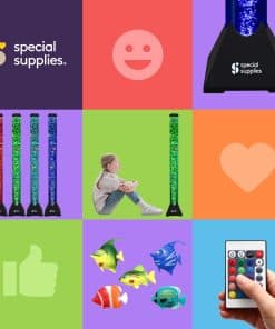 Ayude a aliviar las emociones abrumadoras y reenfoque las mentes y los cuerpos inquietos con una lámpara sensorial de burbujas, colorida y atractiva con peces flotantes gratuitos de Sensory Supplies.