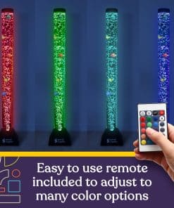 Agregue iluminación suave y brillante a la habitación o área de juegos de su hijo con un tubo de burbuja de acuario sensorial lleno de adorables peces que nadan de arriba abajo a través de colores burbujeantes y fascinantes.