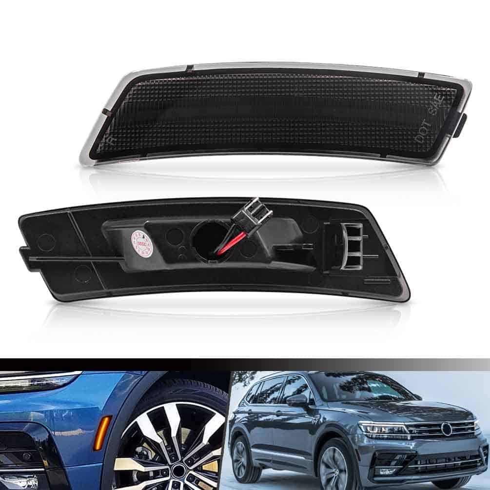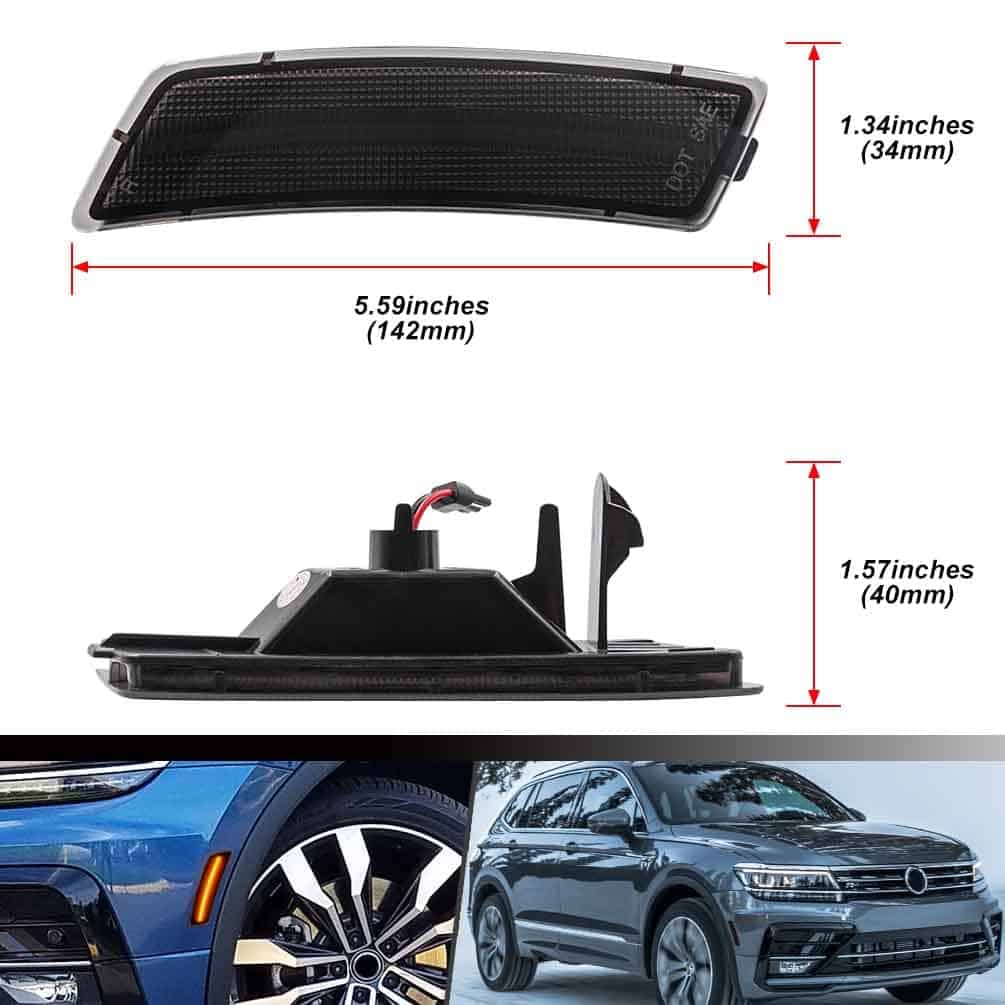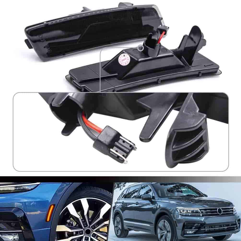Lámparas LED de marcador lateral delantero NJSBYL, repuesto para VW Volkswagen Beetle 2012-2019 y VW Volkswagen Tiguan 2018-2022. Estas luces de marcador lateral LED ámbar están diseñadas para mejorar la apariencia y la visibilidad de tu automóvil. Con un nuevo estilo de lente ahumada, estas luces añaden un toque de elegancia a tu VW Beetle o Tiguan. Las luces de señal de giro LED ámbar están alimentadas por LED SMD de alta potencia en las salpicaderas delanteras, lo que garantiza una salida de luz súper brillante y una mayor visibilidad en carretera. La instalación es sencilla, ya que son plug and play, reemplazando perfectamente las partes de fábrica sin necesidad de modificación. Estas lámparas LED delanteras se venden en un paquete que incluye la lámpara del lado del conductor y la lámpara del lado del pasajero para Beetle/Tiguan. Con aprobación DOT/SAE, puedes confiar en la calidad y seguridad de estos productos. Para cualquier duda o problema, nuestro equipo de atención al cliente está siempre disponible para ayudarte.