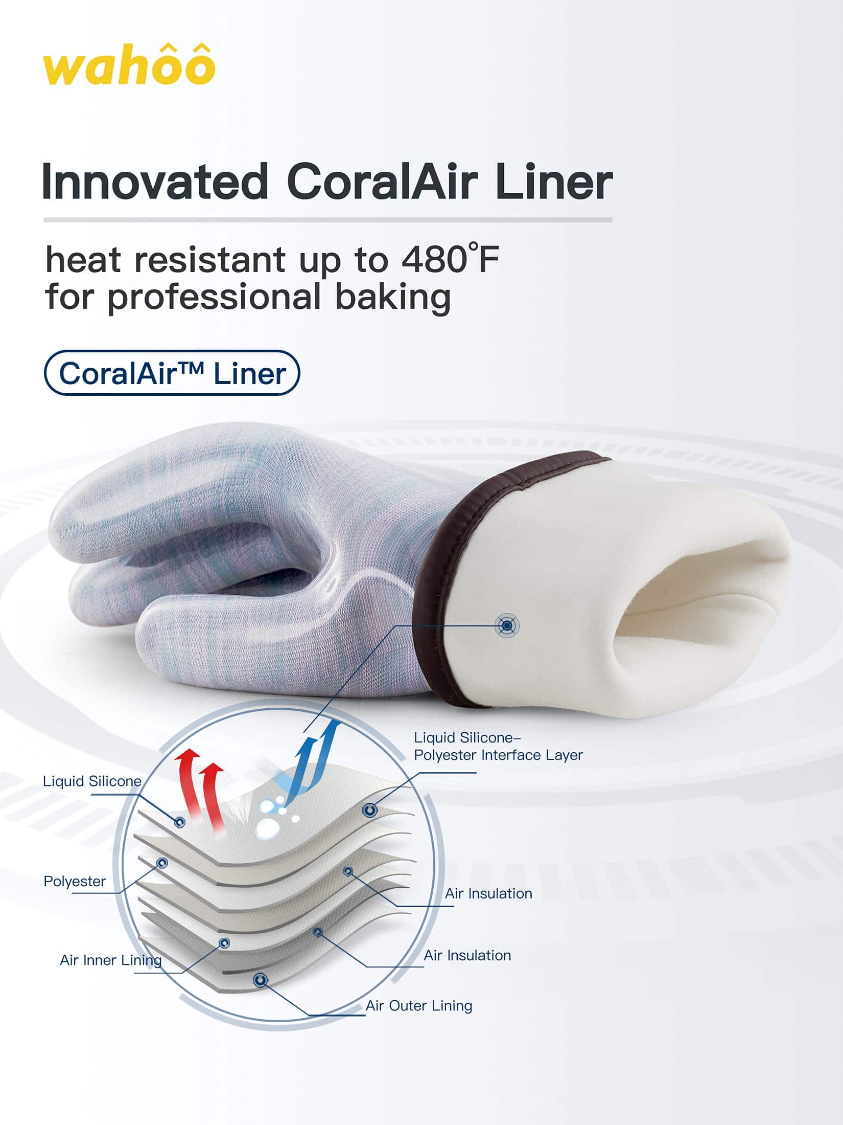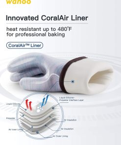 Con un diseño de silicona líquida no adherente, estos guantes son seguros para su uso con alimentos y mantendrán tus manos protegidas de altas temperaturas. El forro Coralair sin costuras brinda comodidad y capacidad de movimiento, permitiendo que tus manos respiren y se mantengan frescas en todo momento.