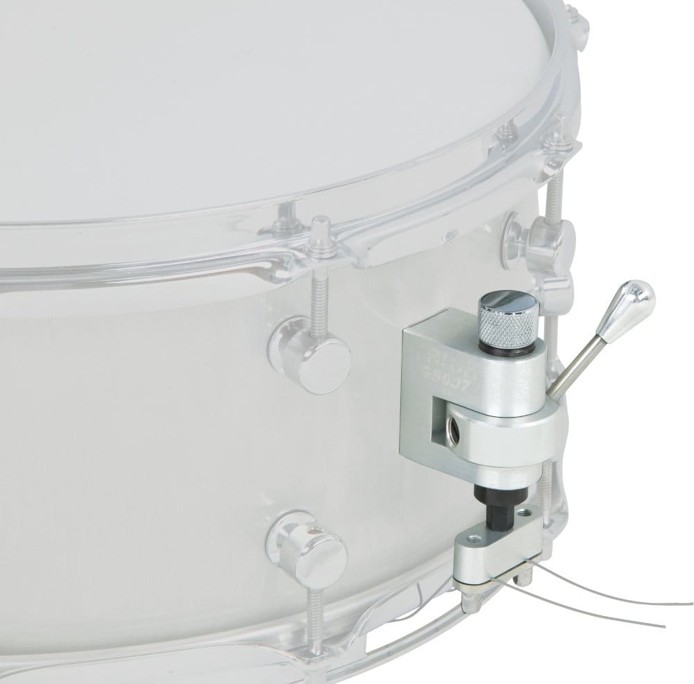 Lanzado con gran éxito y adoptado de inmediato por los principales fabricantes de tambores, el Trick Drums GS007 Snare Drum Throw Off es el mecanismo de lanzamiento más avanzado disponible en la actualidad. El GS007 es obra de Bob Szwaya, ingeniero jefe de Trick, y George Szwaya, especialista en fabricación. Los componentes mecanizados por CNC de tolerancia precisa suspendidos en un lubricante sintético especial le dan al GS007 su movimiento sin esfuerzo y fluido. Para aumentar la resonancia y reducir la cantidad de material que toca el casco, el GS007 contacta a través de dos rieles muy delgados que mantienen el resto del cuerpo elevado. Los lanzamientos GS007 de Trick están diseñados para no resbalar ni fallar. Proporcionan al usuario un control preciso de la tensión del redoblante. El GS007 está fabricado totalmente con piezas de metal macizo mecanizadas compuestas de aluminio de aleación, acero inoxidable y acero endurecido. El diseño de ranura helicoidal operado por leva de Trick proporciona al usuario el lanzador más suave, silencioso, duradero y resistente a la carretera jamás fabricado. Los componentes mecanizados por CNC de tolerancia precisa suspendidos en un lubricante sintético especial le dan al GS007 su movimiento sin esfuerzo y fluido. Fabricado totalmente con piezas de metal macizo mecanizadas compuestas de aluminio de aleación, acero inoxidable y acero endurecido. El diseño de ranura helicoidal operado por leva proporciona el lanzador más suave, silencioso, duradero y resistente a la carretera jamás fabricado. Incluye una leva opcional de varios pasos que permite tres ajustes instantáneos de la tensión del redoblante.