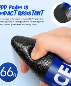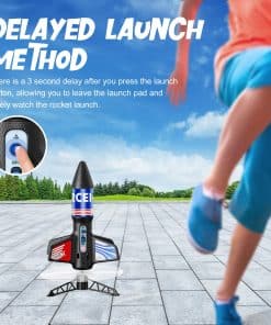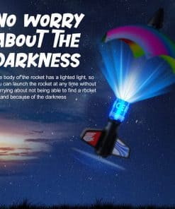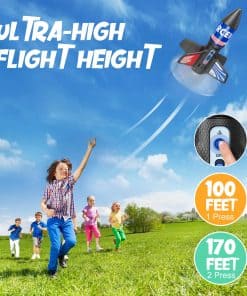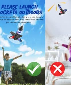 Lanzador de cohetes para niños de la marca Rceico que ofrece una máxima altura de vuelo de 200 pies. Este juguete de alto vuelo es ideal para usar en espacios abiertos al aire libre. La hélice circular mejorada, más ligera y suave, garantiza un vuelo más alto y estable, siendo más seguro para los niños. El material de espuma EEP de la carcasa del cohete lo hace ligero y mejora su altura de lanzamiento. Al alcanzar cierta altura, el paracaídas se abrirá automáticamente para un aterrizaje suave. Además, las luces incorporadas permiten seguir el trayecto del cohete incluso de noche. El juego cuenta con un tiempo de lanzamiento retardado de 3 segundos para mayor seguridad. El cohete es recargable a través de USB-QC, con una carga completa de 35 minutos que permite aproximadamente 25 lanzamientos antes de necesitar recargarse, lo que ahorra costos y molestias de cambio de batería.