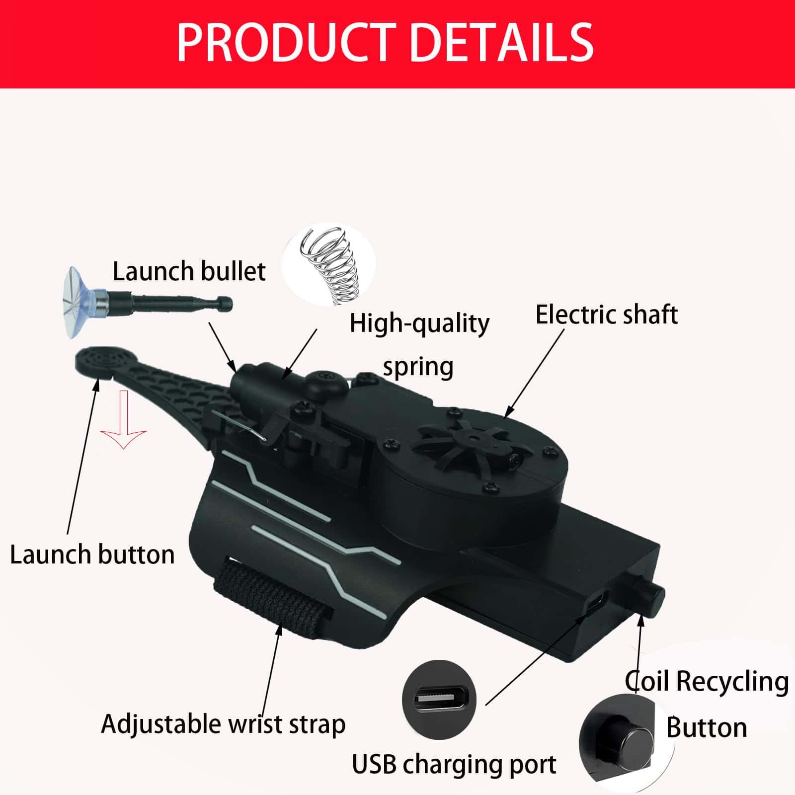 4. JUEGO MÚLTIPLE: Hemos preparado un juego adicional de ventosas e imanes para tu lanzador de telarañas. la cabeza magnética con un imán se puede adosar a productos de hierro después del lanzamiento, y la succión es muy fuerte, por lo que no hay necesidad de preocuparse por perderlo. Usando ventosas en lugar de imanes, la cabeza se puede adherir a superficies lisas (como azulejos o vidrio).