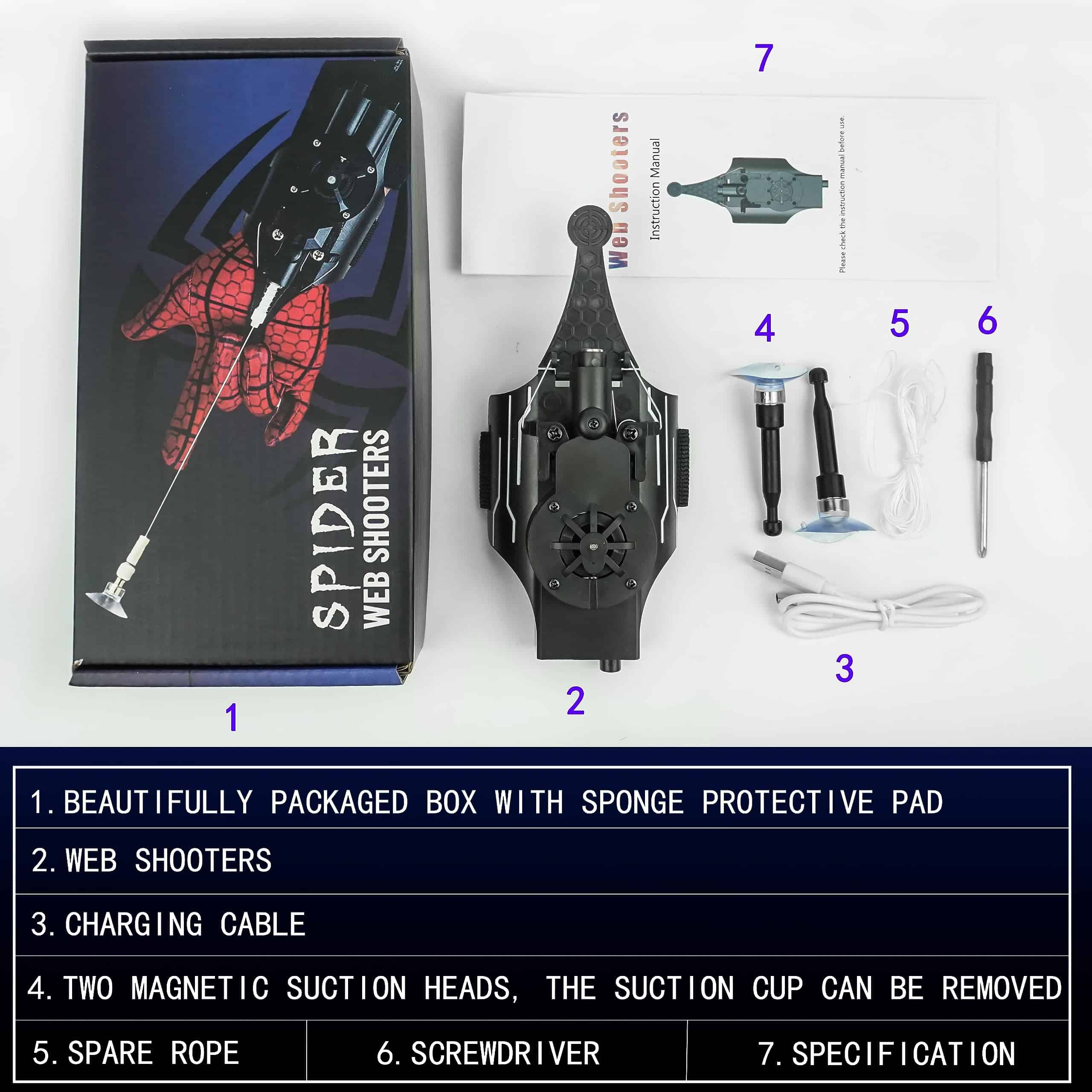 3. Producto de Alta Calidad: Los lanzadores de telarañas para niños, moldeados usando impresión 3D, pulidos a mano. resistente y firmemente cosido, duradero, seguro y confiable, flexible y fácil de llevar Lanzador de Seda de Araña para Niños Después de muchas pruebas de caída, la calidad está garantizada.