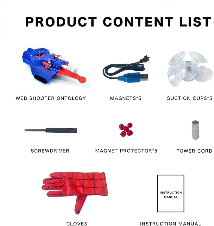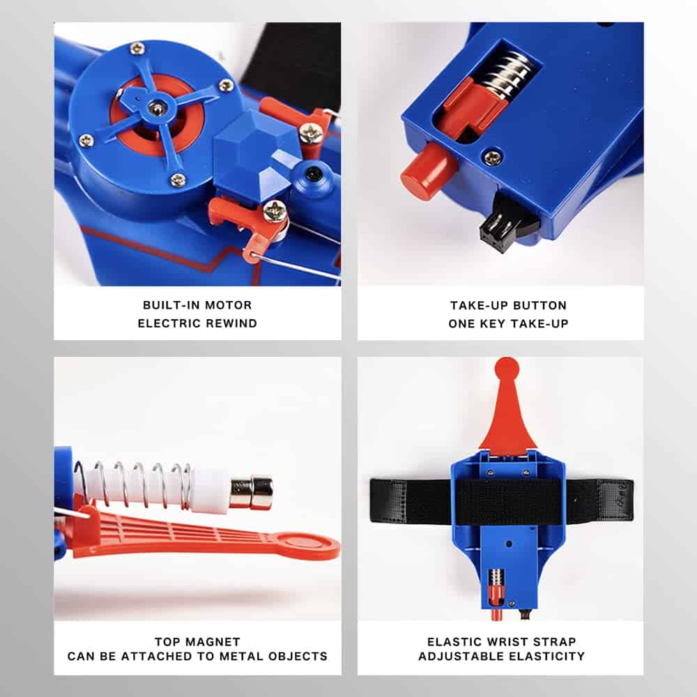 1. Con gran poder viene una gran responsabilidad. Es un lanzador cibernético que puede ser disparado repetidamente con los movimientos icónicos de un superhéroe; 2. Calidad superior y durabilidad: Supera a las alternativas frágiles impresas en 3D. Nuestro lanzador de telarañas de producción en masa está optimizado estructuralmente, resistente a caídas y está construido para durar, ofreciendo tanto confiabilidad como asequibilidad. 3. Fácil operación de los lanzadores de telarañas: Equipado con una batería recargable y un motor. Simplemente presione el interruptor del carrete durante 4 segundos y luego la cuerda para lanzar. ¡Dispara a una impresionante distancia de hasta 9.6 pies! 4. Diversión versátil en cualquier lugar: Perfecto para juegos en interiores o jardines. Configure el objetivo punteado, deje que los niños disparen y recompense su precisión. Mejora la coordinación mano-ojo y las habilidades observacionales, convirtiéndolo en una actividad familiar o de fiesta atractiva. 5. Libera sus sueños de superhéroes: Inspirados en diseños icónicos de películas, nuestros juguetes ayudan a los niños a vivir sus aspiraciones de superhéroes. Vístelos, déjalos salvar el día y asegura una experiencia de compra encantadora con nuestro soporte al cliente dedicado.