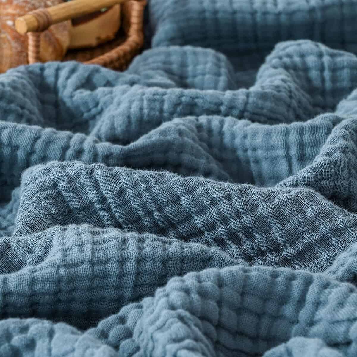 3. Versátil y Elegante: Esta manta de muselina es más que un artículo funcional; es una adición elegante a su hogar. Úsela como una manta en su sofá o cama para agregar un toque de elegancia natural y casual con su encantadora textura arrugada. También es ideal para viajar, acampar o hacer picnics, ofreciendo acogimiento donde sea que vaya.