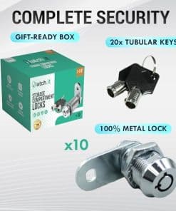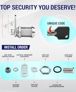 4. CADA KIT LLEGA LISTO PARA INSTALAR E INCLUYE 10 Cerraduras de Gabinete de RV, 20 Llaves de Cerradura Cam Tubular, Empaque Premium Listo para Regalo, Tuerca de Bloqueo, Arandelas de Bloqueo y Anillo en O Impermeabilizante. ¡AHORRE DINERO al no tener que comprar llaves adicionales e INSTÁLELO en 5 MINUTOS! ¡Todo respaldado al 100% por nuestra política de reemplazo de por vida y soporte en línea 24/7. ASEGÚRESE DE QUE LAS DIMENSIONES SE AJUSTEN A SU APLICACIÓN.